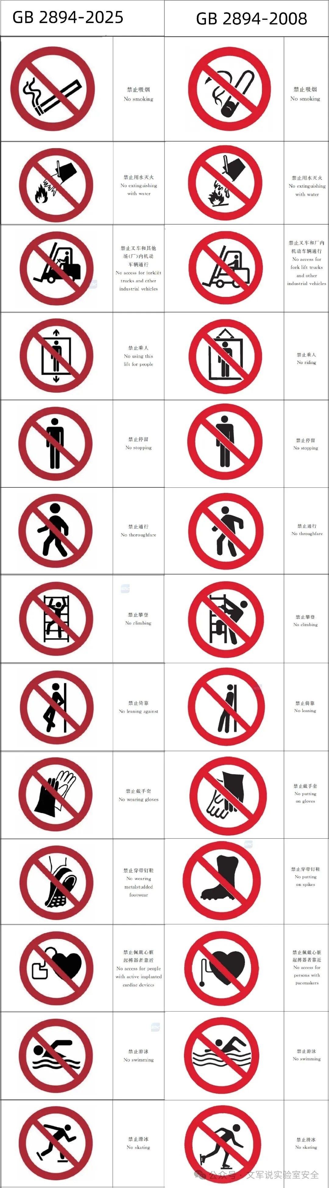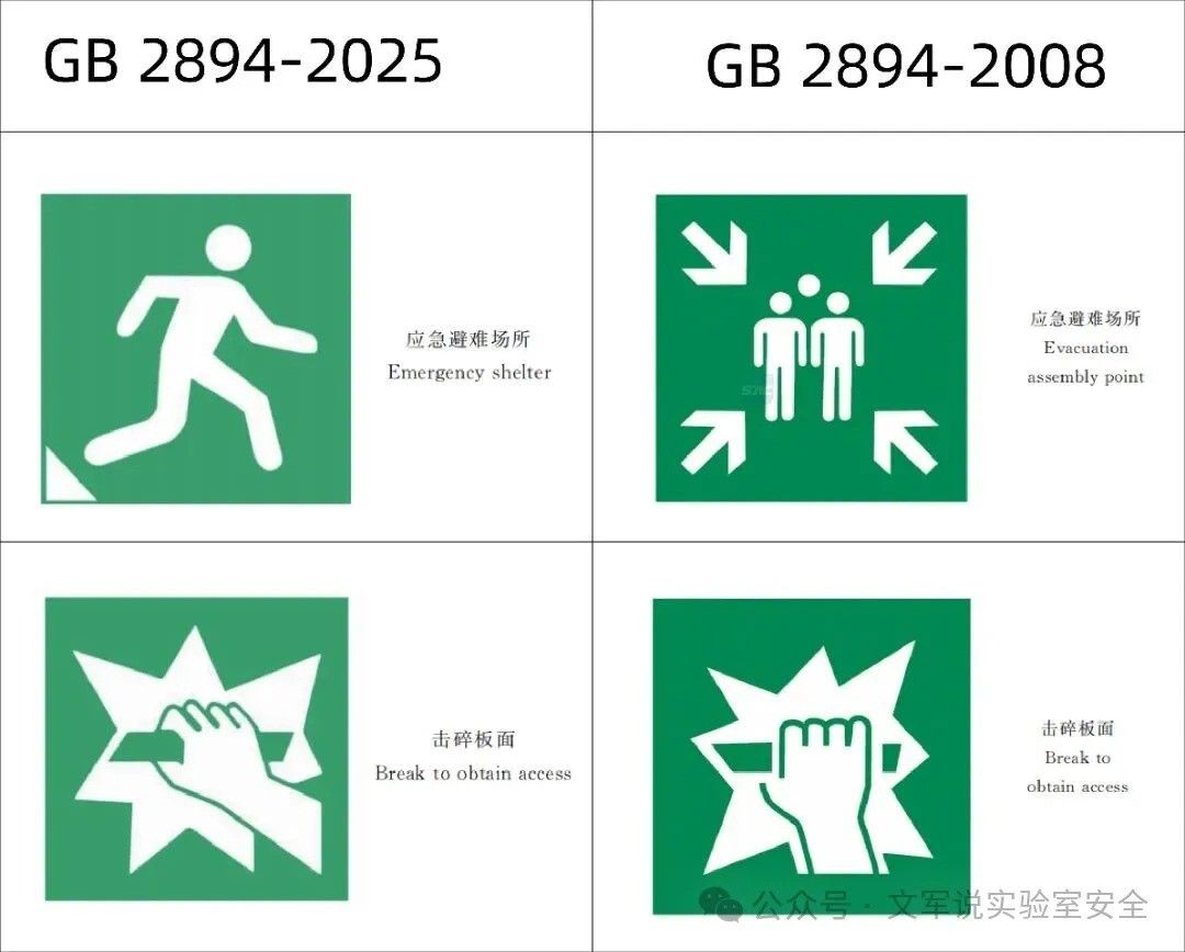 除了上述调整,新标准还删除了“激光辐射窗口标志和说明标志”;更改了“安全标志牌的要求”“安全牌的型号选用”“标志牌的设置高度”“安全标志牌的使用要求”和“检查与维修”的编排方式;增加了照明条件差的场所安全标志的使用要求;更改了安全标志牌更换或采取相应措施的要求;删除了图形标志“禁止穿化纤服装”;删除了激光辐射警告标志的规范性附录。