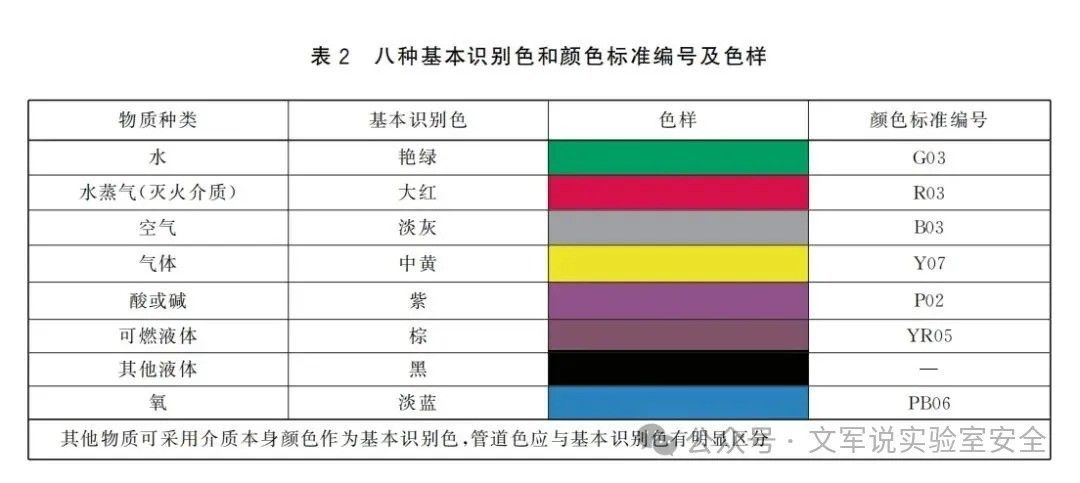 新标准整合了GB 7231—2003《工业管道的基本识别色、识别符号和安全标识》,增加了工业管道基本识别色和识别符号的相关要求:针对工业管道中八种常见介质规定了其基本识别色,识别符号基本组成应包含但不限于物质名称和流向。