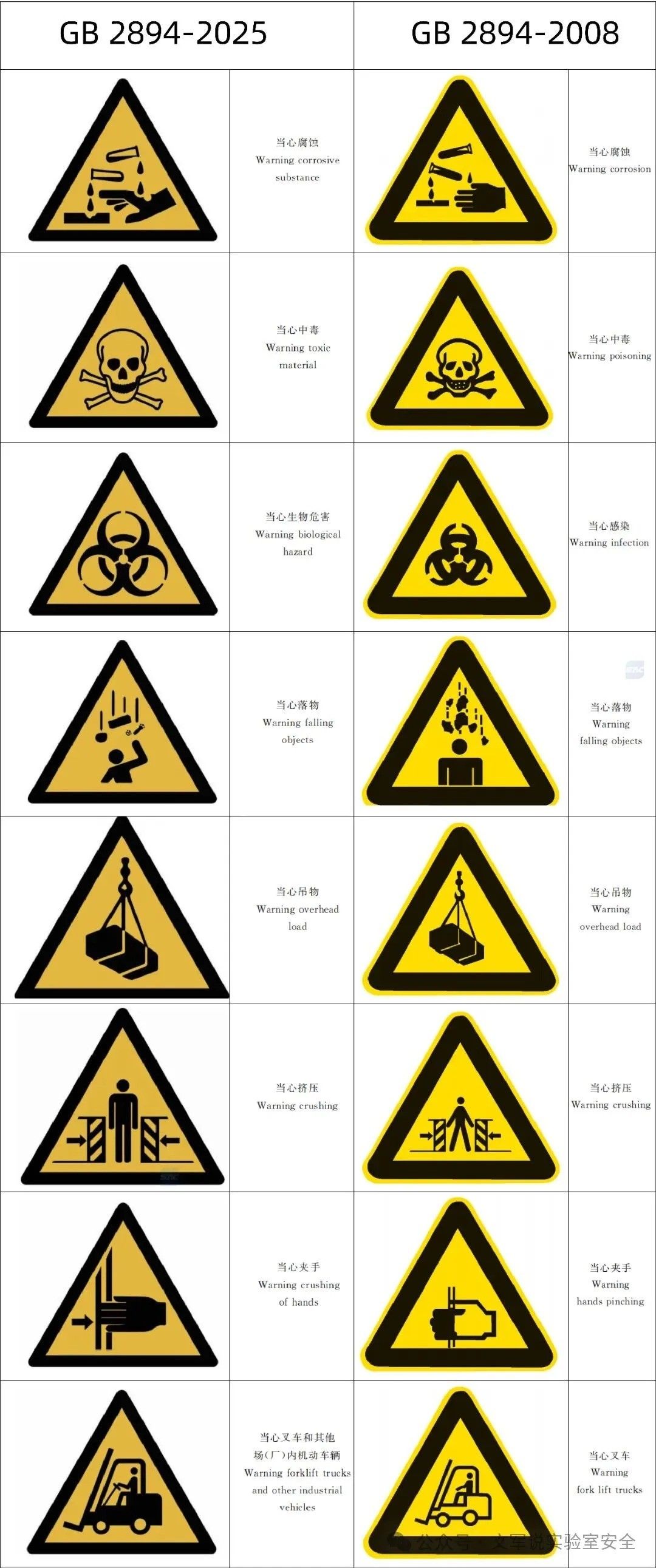 安全标志可以快速、准确地引起人们的注意并传达关键信息。实验室里的安全标志就像沉默的哨兵,提醒实验人员要预防危险,从而避免事故发生;当危险发生时,根据指示尽快逃离,或者根据指示采取正确、有效、得力的措施,对危害加以遏制。