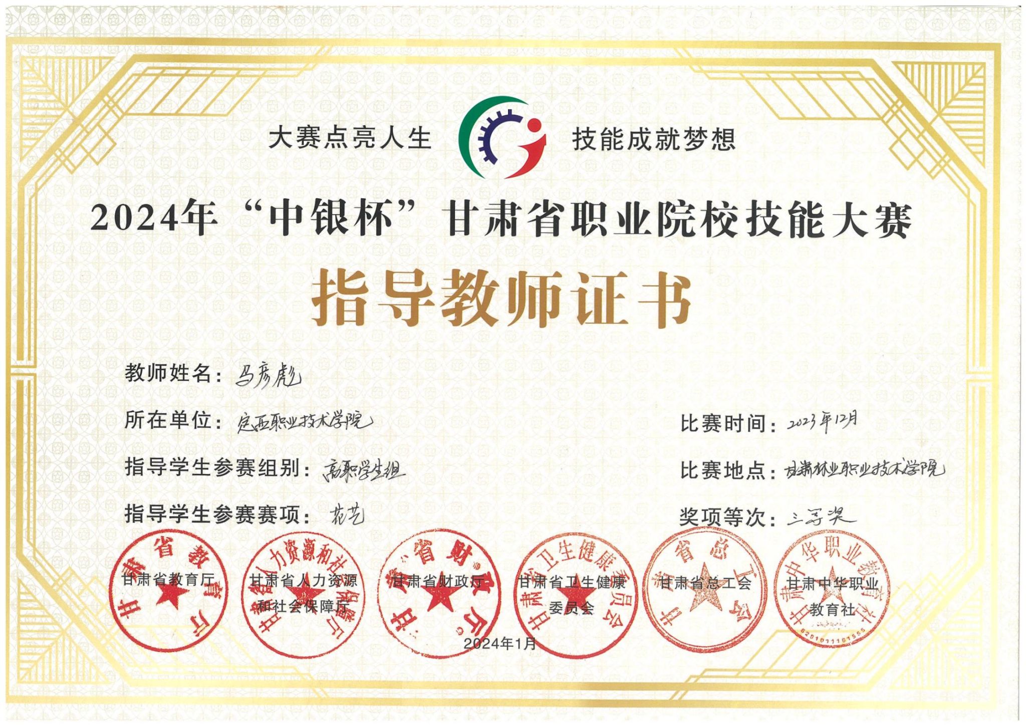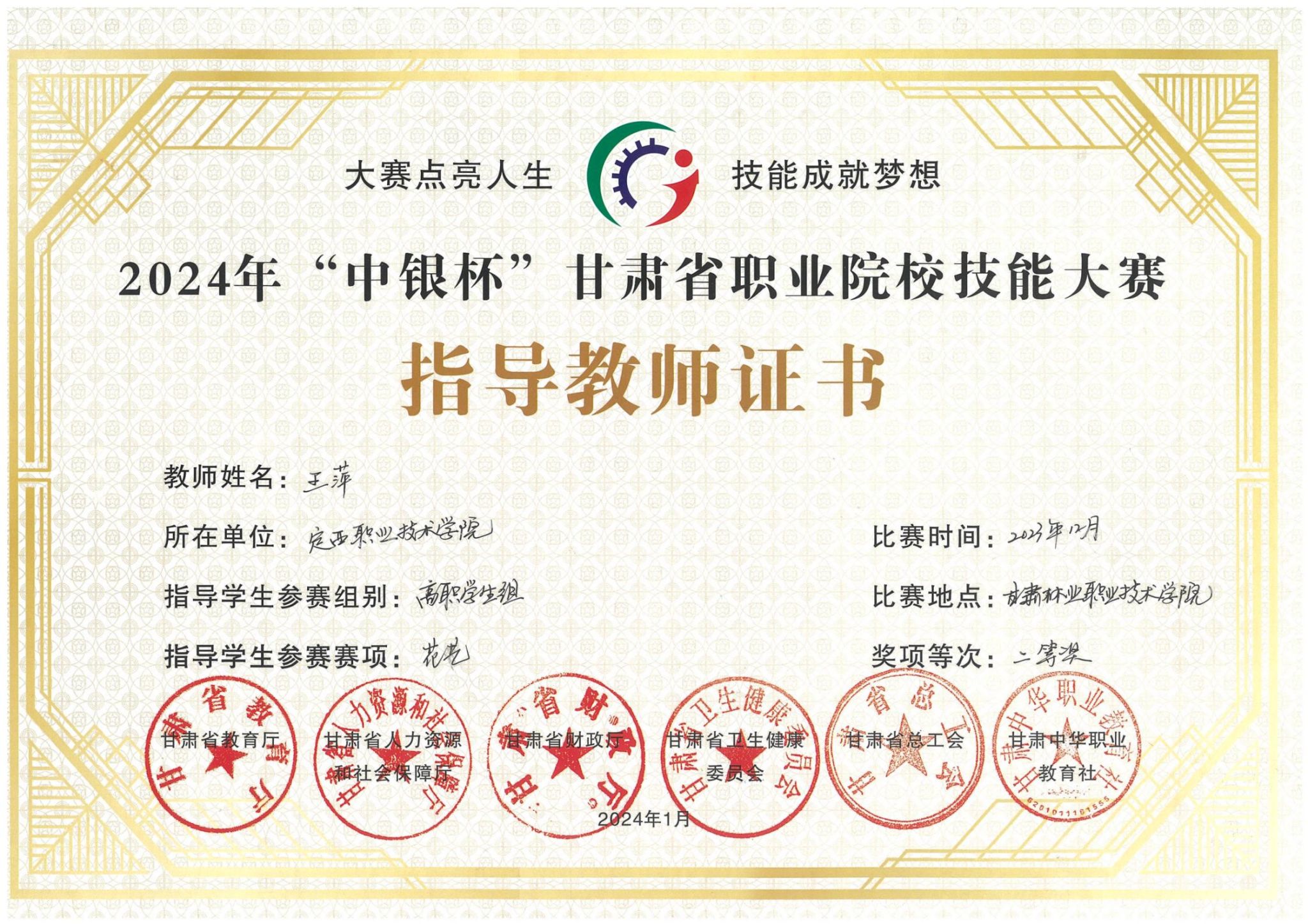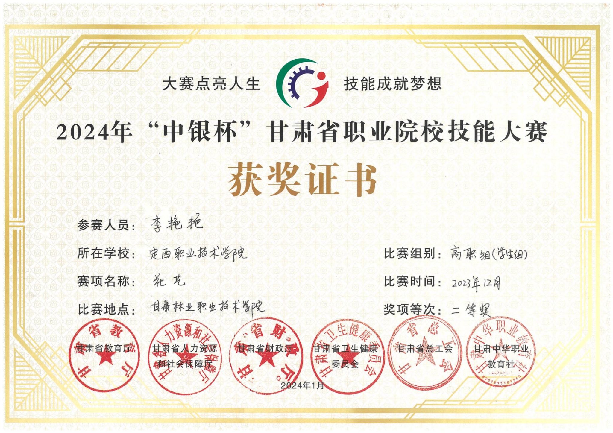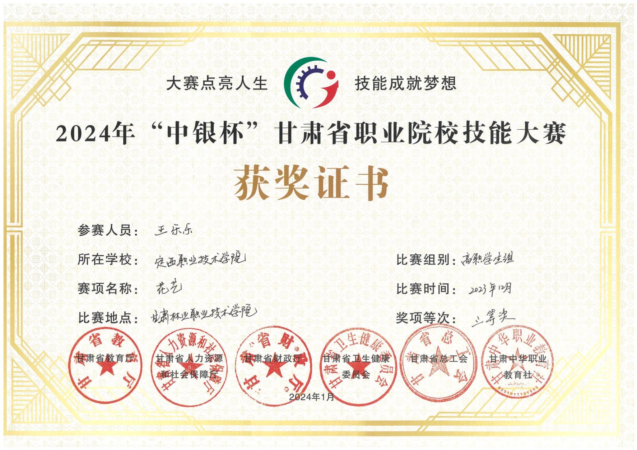 2024年“中银杯”甘肃省职业院校技能大赛“花艺”赛项获奖证书