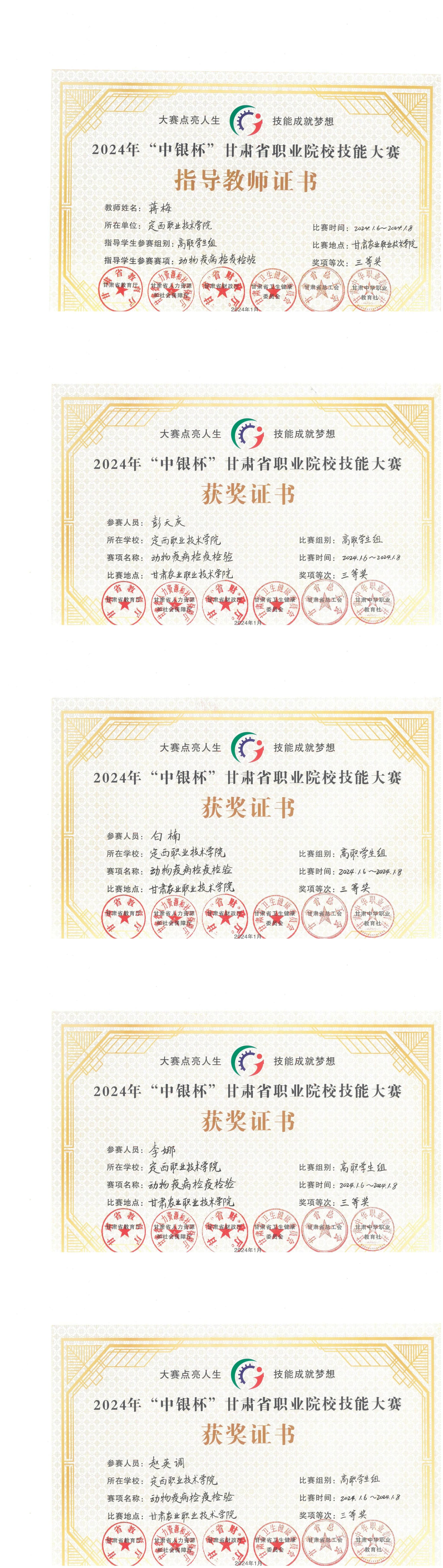 2024年“中银杯”甘肃省职业院校技能大赛“动物疫病检疫检验”赛项获奖证书