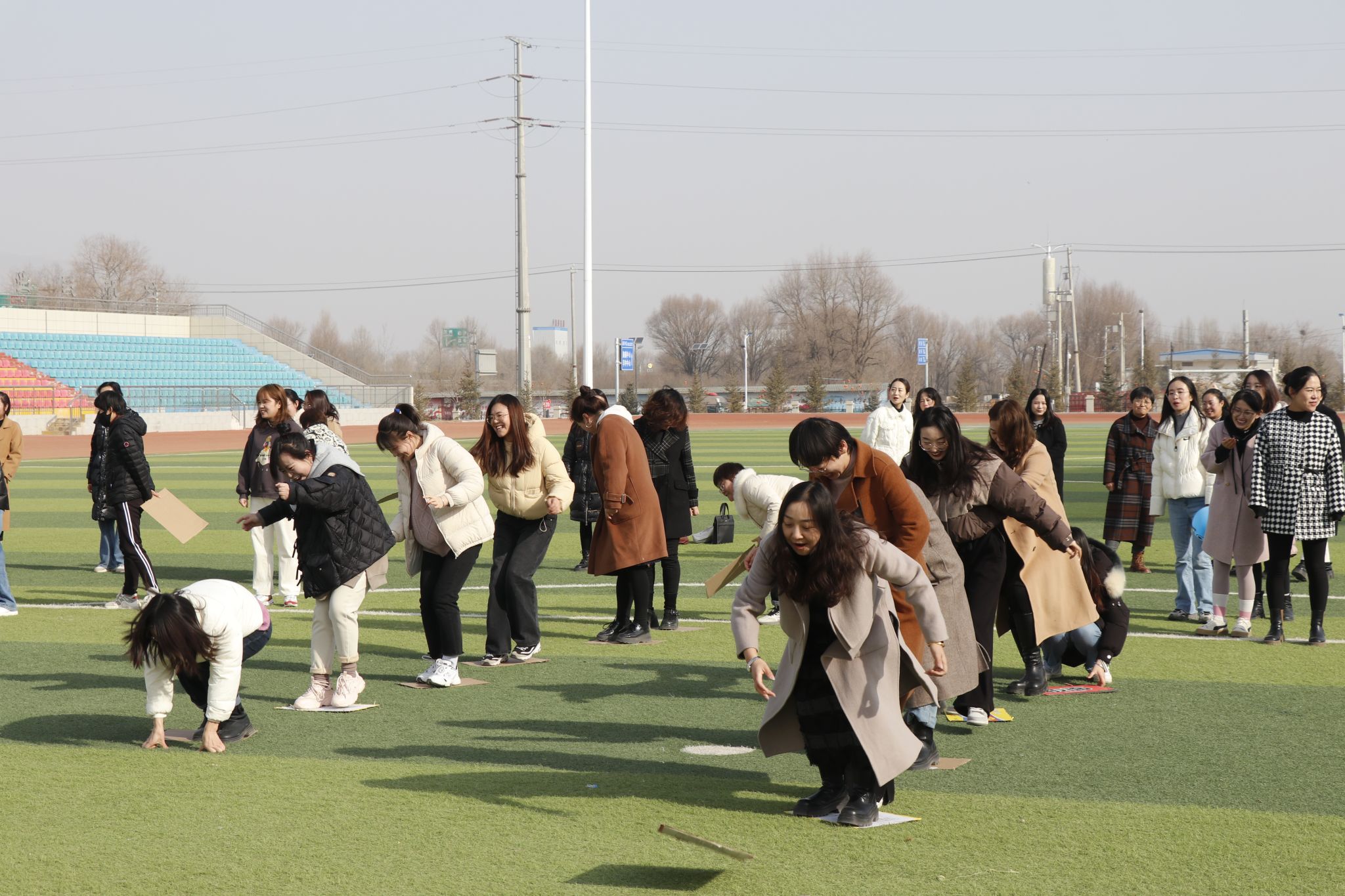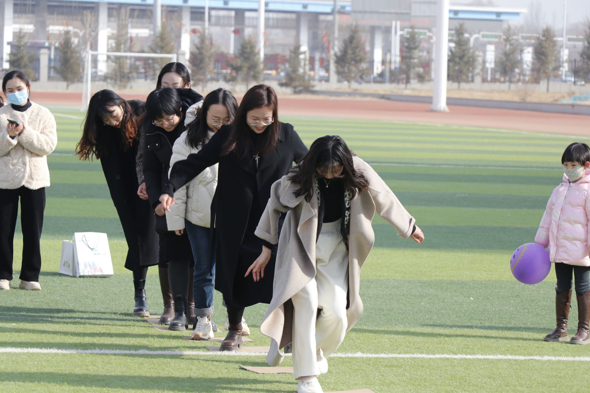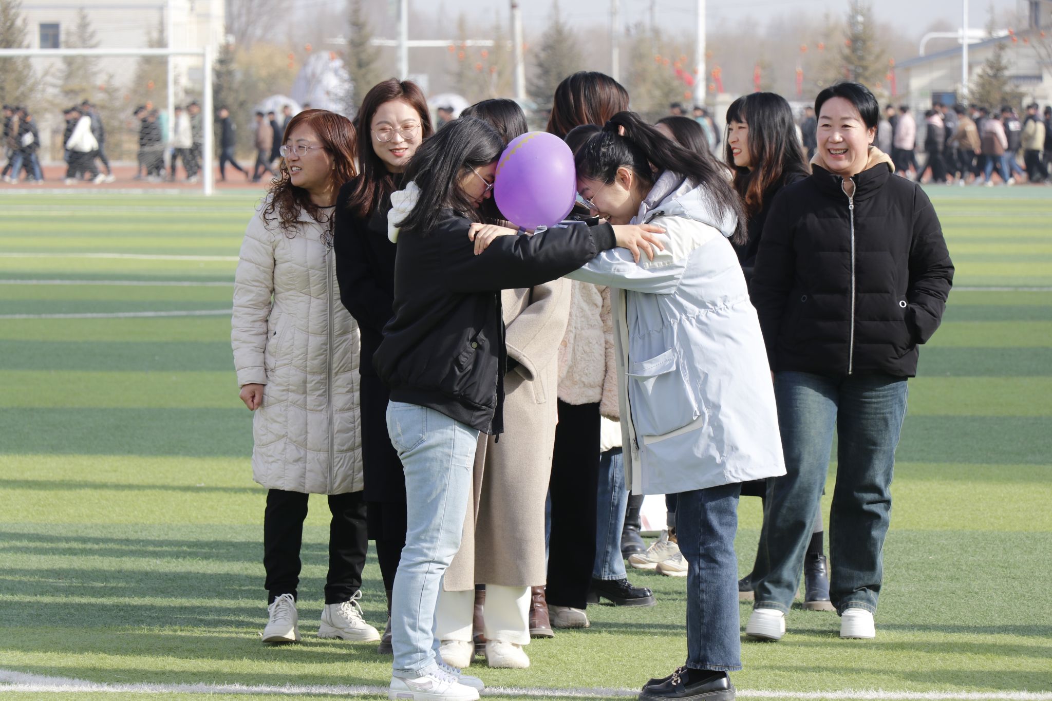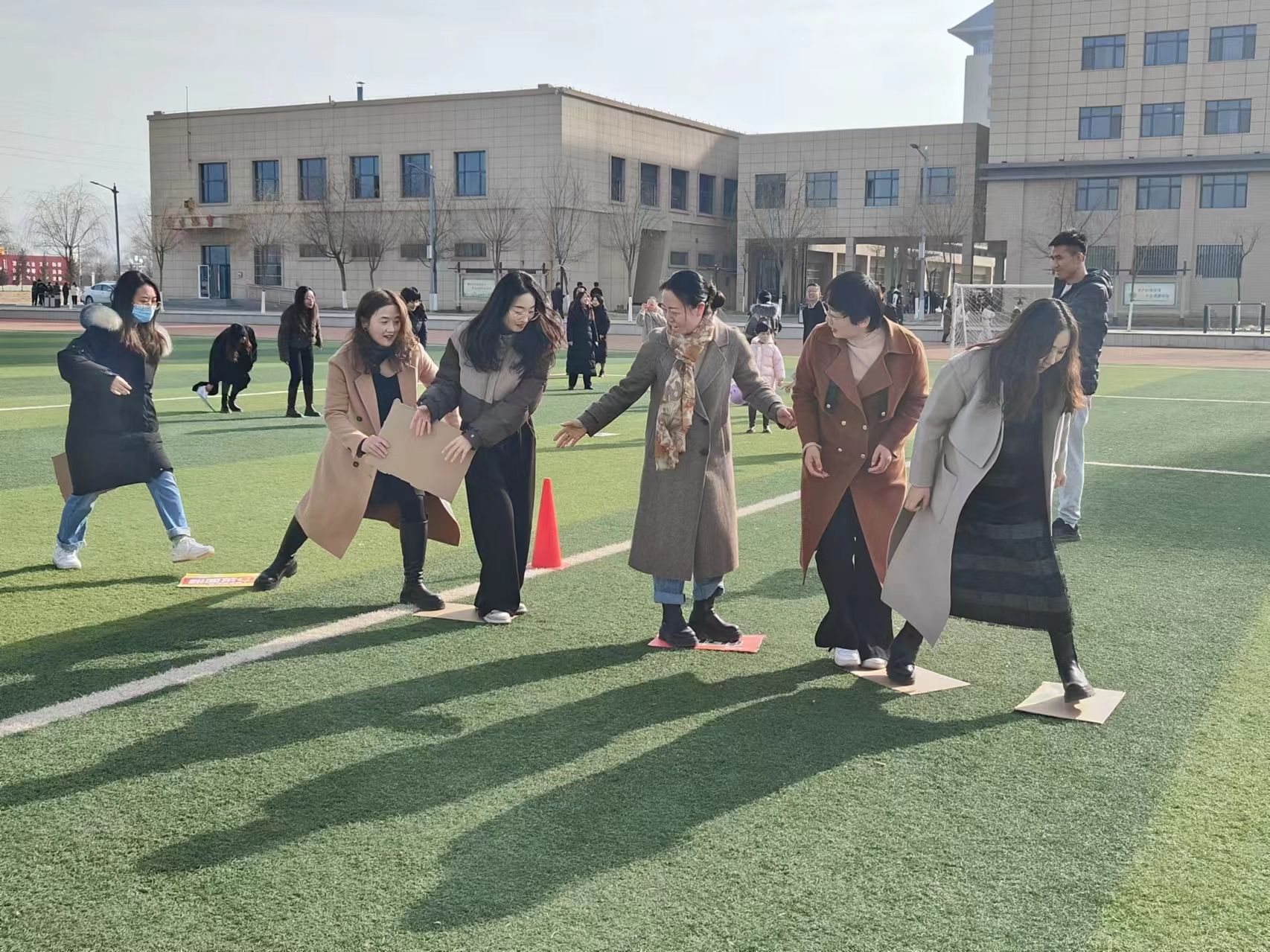 活动现场,女教职工们踊跃参与到充满乐趣的团体项目中,大家热情高涨,配合默契,齐心协力,欢笑声此起彼伏,场面十分热闹。