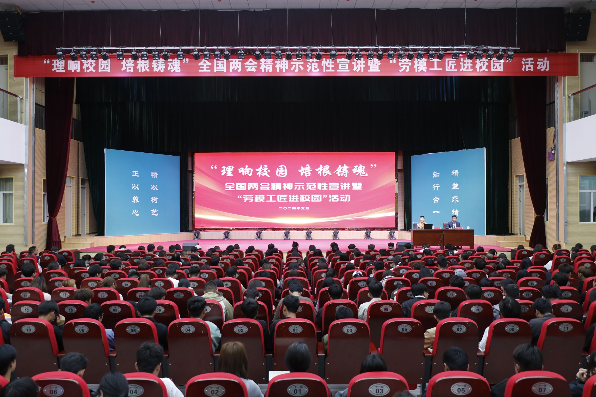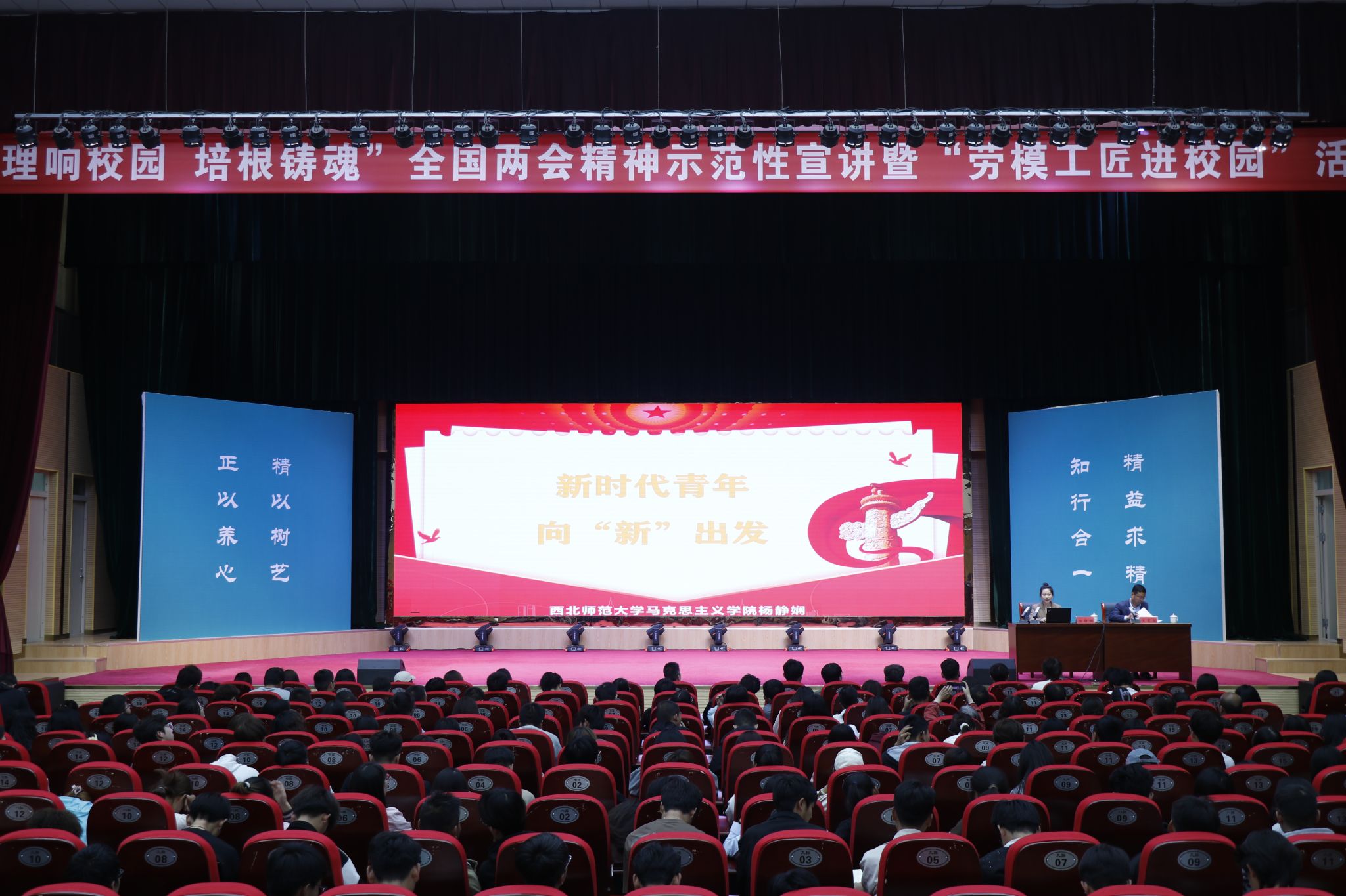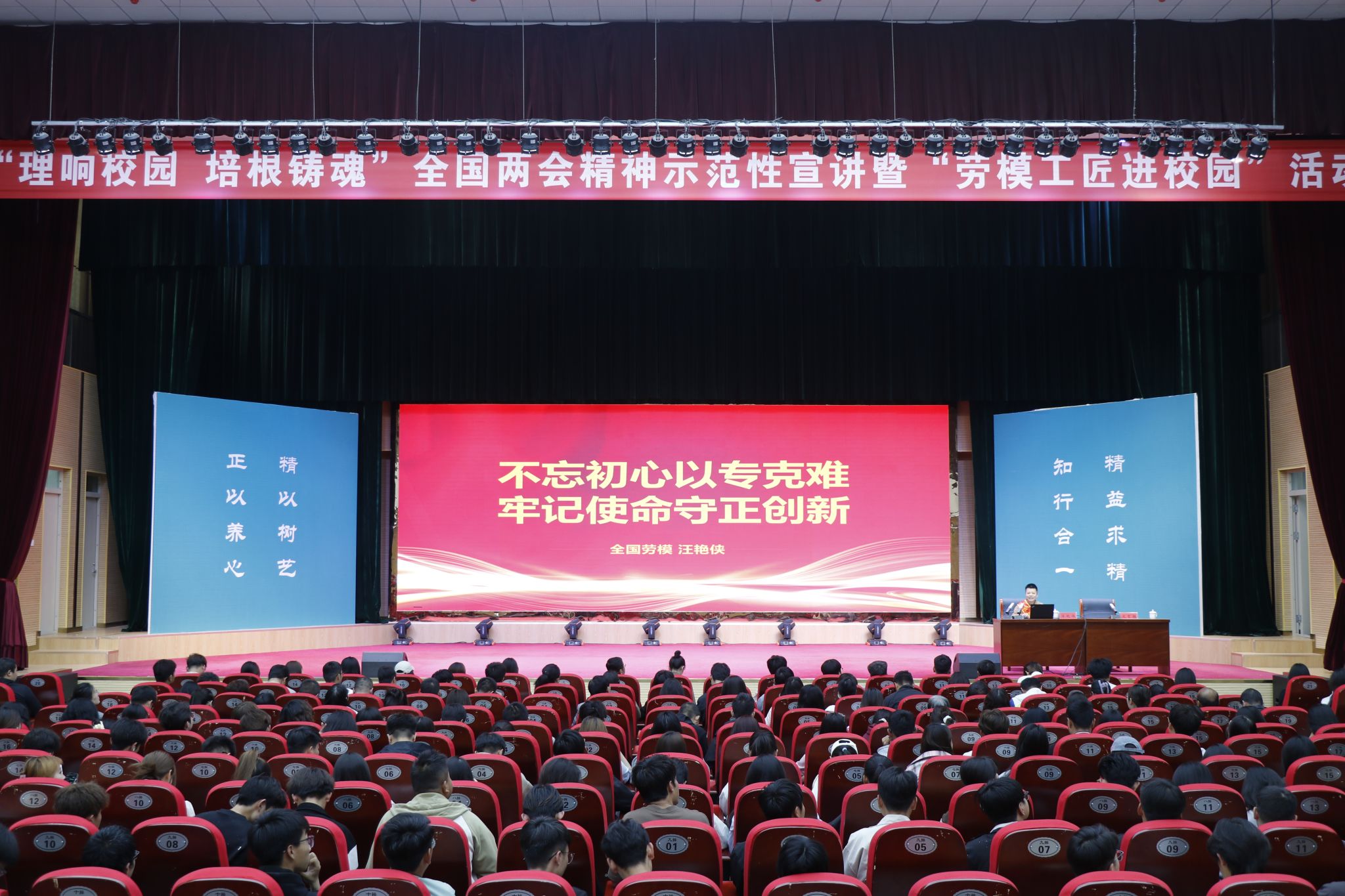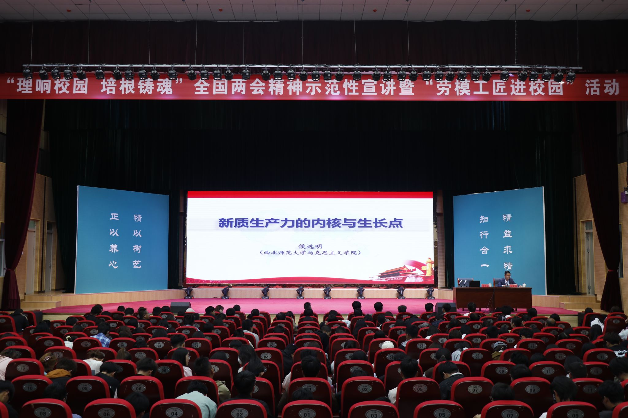 根据省委教育工委、省总工会有关要求,beat365官网于5月11日,在会议中心礼堂举办“理响校园·培根铸魂”全国两会精神示范性宣讲暨“劳模工匠进校园”活动。第三宣讲团成员中国石油兰州石化分公司合成橡胶厂原丁腈车间操作工、全国劳模汪艳侠,西北师范大学马克思主义学院教授侯选明,西北师范大学马克思主义学院硕士研究生杨静娴为beat365官网师生宣讲。活动由学校党委委员、副院长文育胜主持,学校中层领导、各二级学院院长及全校500余名师生代表聆听宣讲。