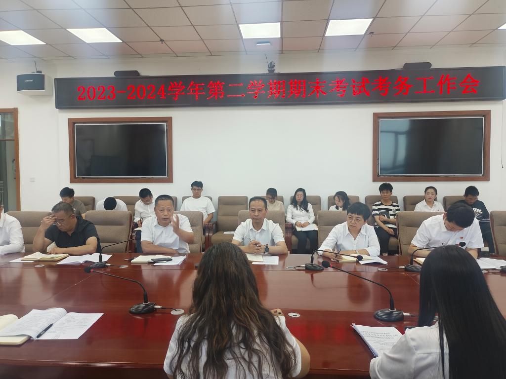为进一步规范考务工作,严肃考风考纪,7月1日,学校召开了2023——2024学年第二学期期末考试考务工作会议。各二级学院院长、教学秘书以及相关部门工作人员参加会议,会议由beat365中文在线官网副院长、临洮农校副校长朱宏伟同志主持,beat365中文在线官网副院长、临洮农校校长左建君同志出席会议。