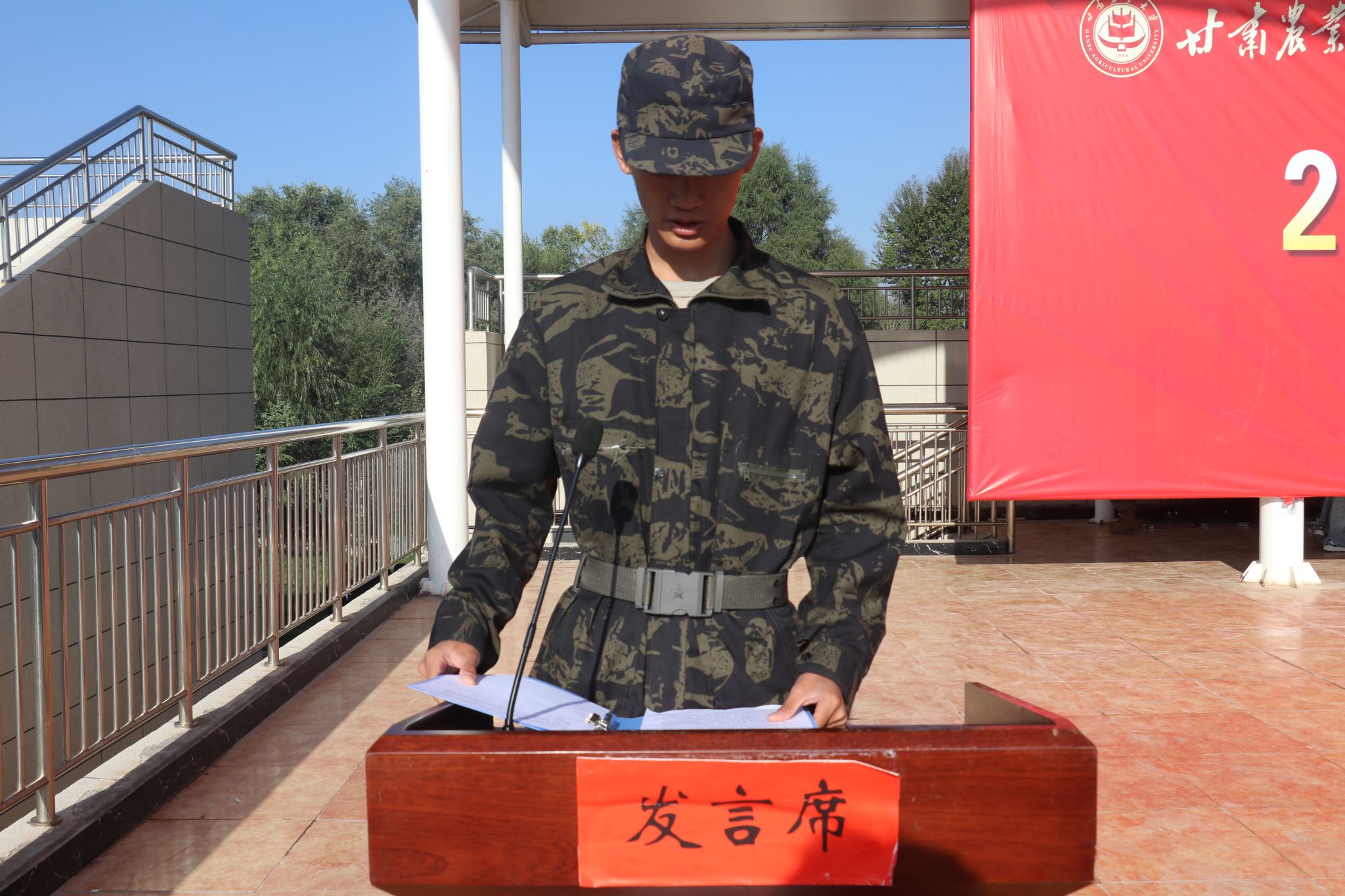 青春不惧骄阳,磨砺铸就成长。beat365中文在线官网党委副书记薛小琴同志宣读《军训先进集体、个人表彰决定》,授予王占胜、王海军、毛志刚等5名教官“优秀教官”称号;授予马步升、牛瑞珍、党文瑞等35名同学“训练标兵”称号;授予一营三连、国旗护卫队、二营二连等6个连队“优秀连队”称号。薛小琴同志代表学校向为军训工作付出辛劳的教官和老师们表示感谢,向刻苦训练的全体同学表示亲切慰问,向在军训中涌现出来的先进单位和先进个人表示祝贺。
