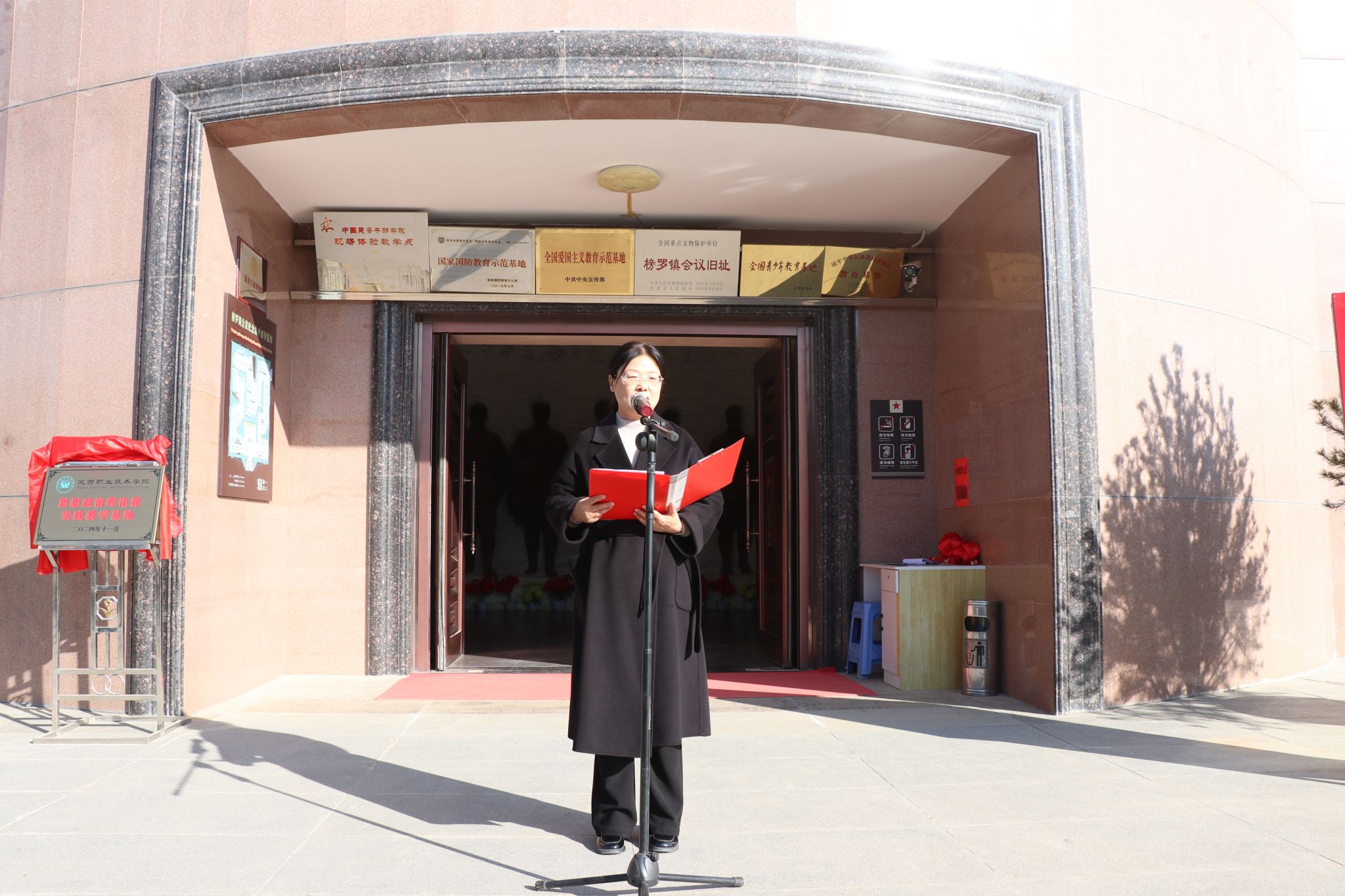 为深入贯彻落实习近平总书记对学校思政课建设重要指示精神,加快构建“大思政课”工作格局,充分发挥“大思政课”实践教学基地育人功能,11月22日,beat365中文在线官网赴榜罗会议纪念馆开展思政课实践教学基地结对共建暨“青马工程”班实践研学活动。beat365中文在线官网党委副书记薛小琴、中共中央政治局榜罗会议纪念馆馆长陈鹏鸣出席,榜罗会议纪念馆工作人员、学院党委办公室、宣传统战部、校团委、马克思主义学院教师代表、“青马工程”班学员参加。揭牌仪式由马克思主义学院负责人许友强主持。