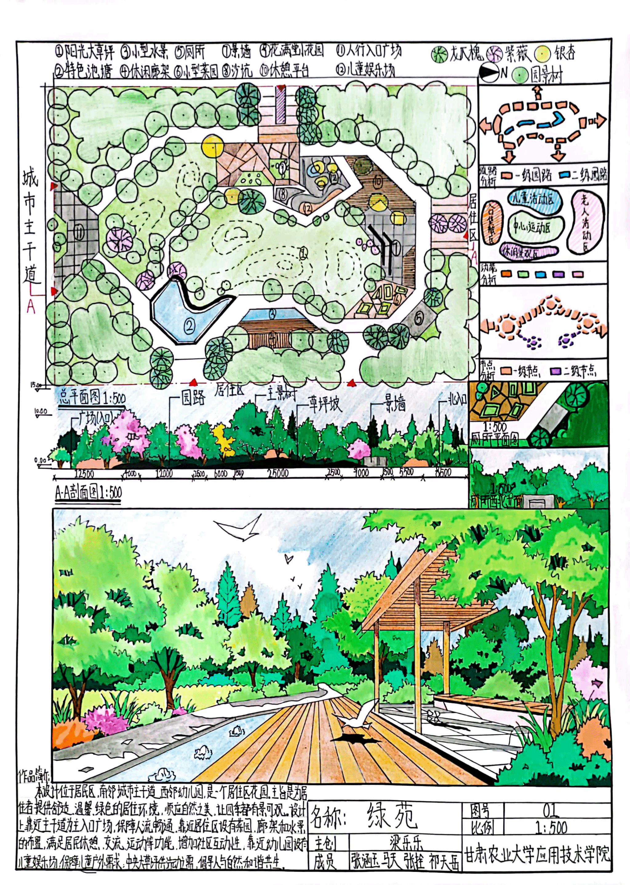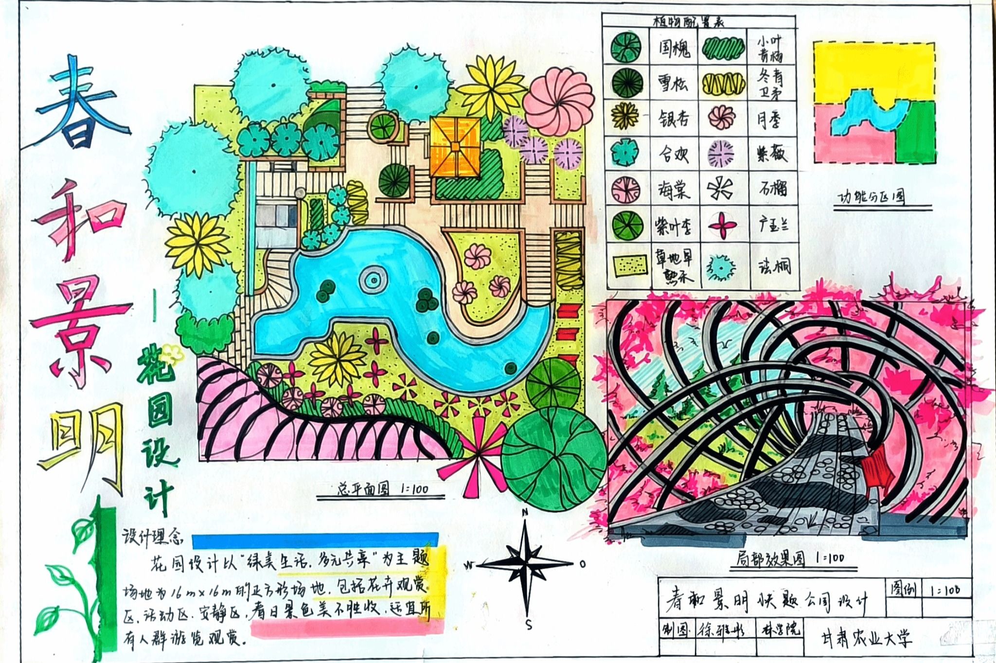 本次竞赛以“绿美生活 多元共享”为主题。参赛作品涵盖甘肃农业大学园艺学院、应用技术学院、人文学院等众多学院共计83个参赛队。这些作品形式多样,内容丰富,既有精细入微的平面图与立体图,展现了设计者对空间布局的独到见解;也有色彩斑斓的手绘图与电脑绘图,每一笔一划都透露出创作者对美的追求与向往;更有全景图与一角图让人仿佛置身于一个个精心打造的梦幻花园之中,感受着自然与艺术的完美融合。