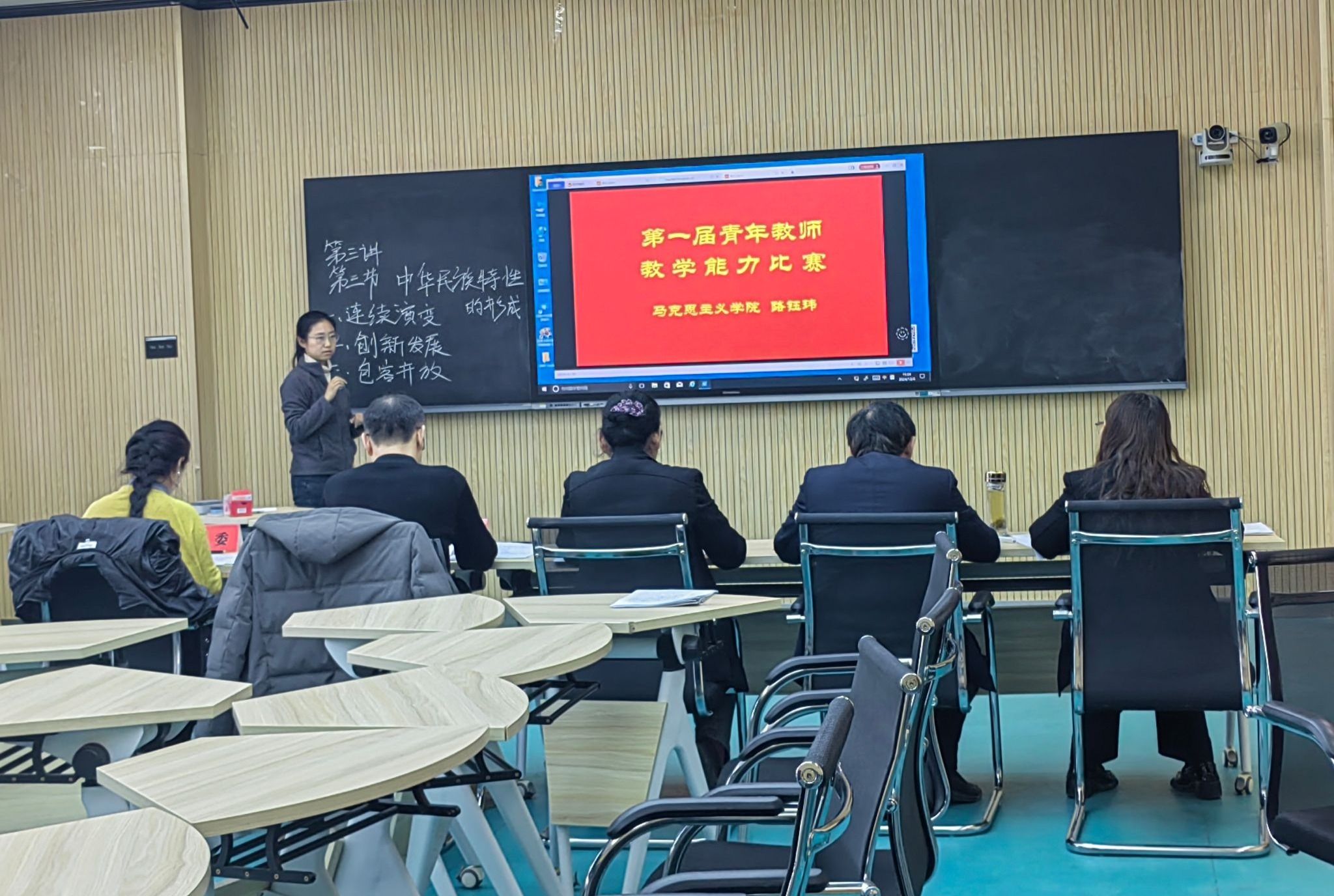 为进一步提升青年教师教育教学能力,促进教师专业发展,全面提升教师综合素养,提高教育教学质量,12月5日,马克思主义学院在综合教学楼开展了青年教师教学能力比赛,旨在为2025年度甘肃省职业院校教师教学能力比赛做准备。赛事分为教案设计(占25%)和课堂讲授(占75%)两个部分。参赛教师通过抽签决定出场顺序与讲授内容,在规定时间内展示教学设计与实际教学能力。