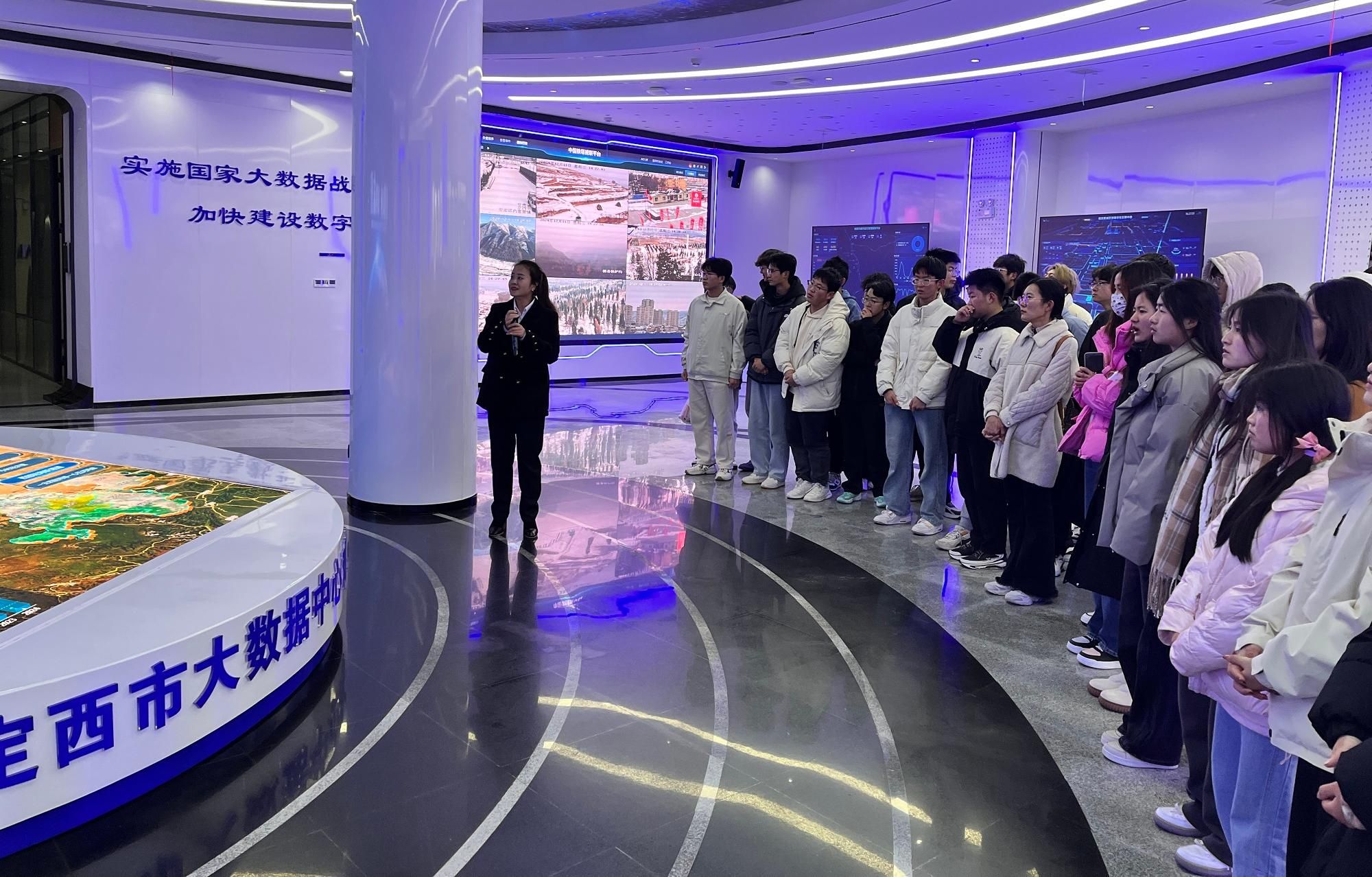 第二站师生们参观的是定西市大数据中心。定西市大数据中心主要提供定西市范围内智慧城市管理、城市运营、城市服务等一系列智慧城市建设。还提供了道路监控、耕地实时状态、中药材种植状况等切合当地实际的大数据信息,更好的服务地方经济建设。工作人员向师生们展示了定西市全域时空数据聚合系统的各项功能,该系统旨在“汇定西全域时空数据 建城市大脑数字中枢”。对在定西市建设智慧城市起到带动和引领的作用。