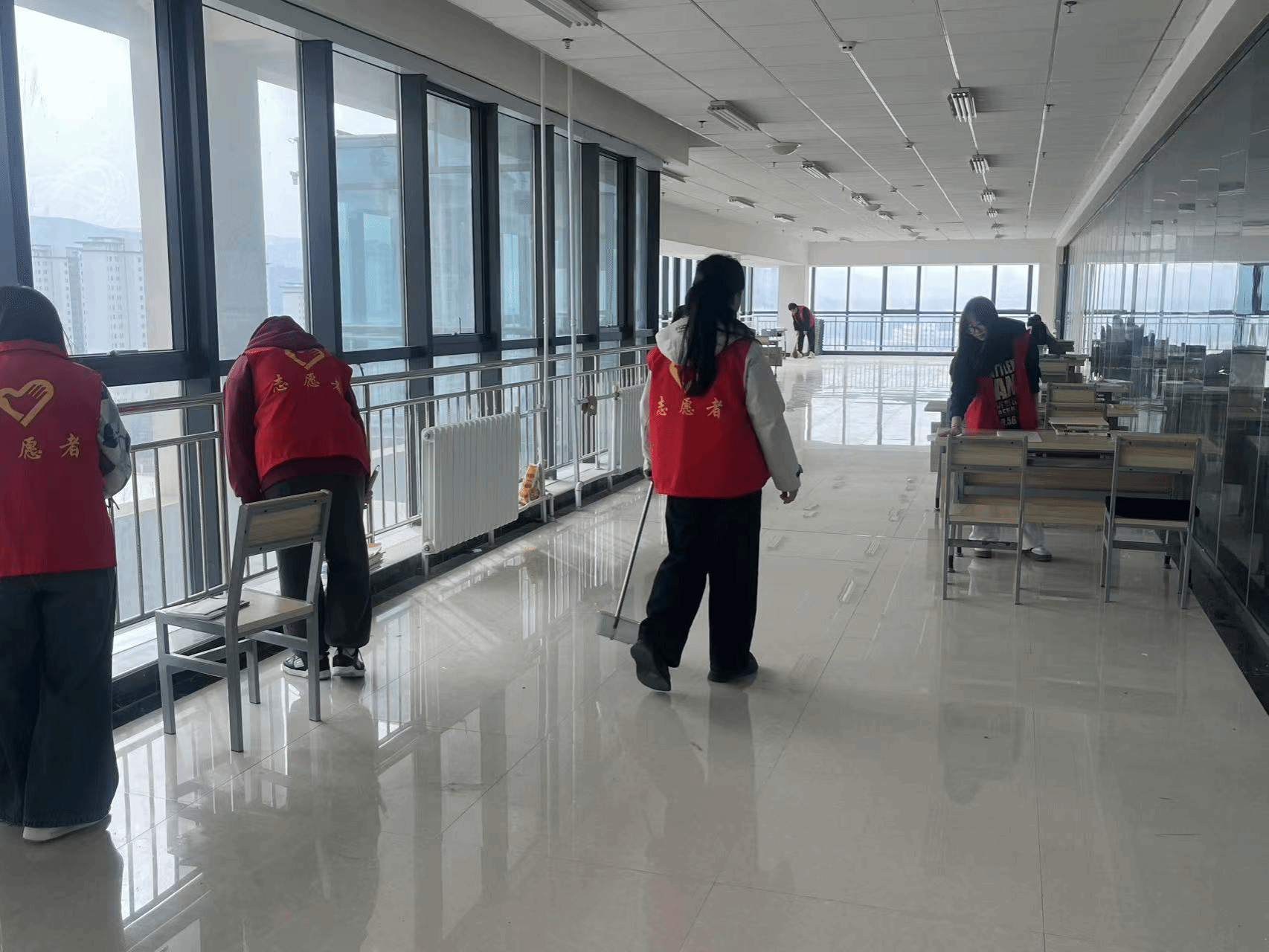 志愿者们身着统一服装,手持清洁工具,对校园走廊、实验室及公共活动区域等进行了细致清理。为师生们创造了更加整洁舒适的学习生活空间。
