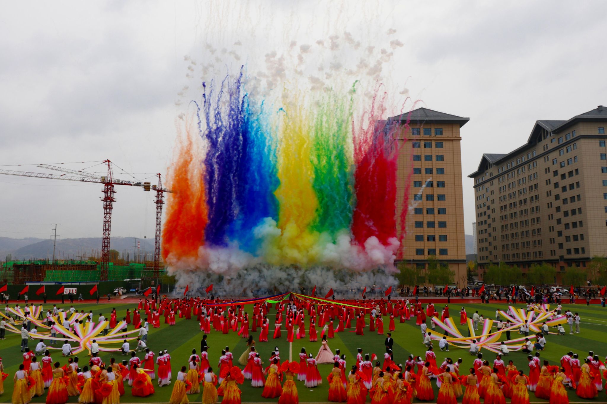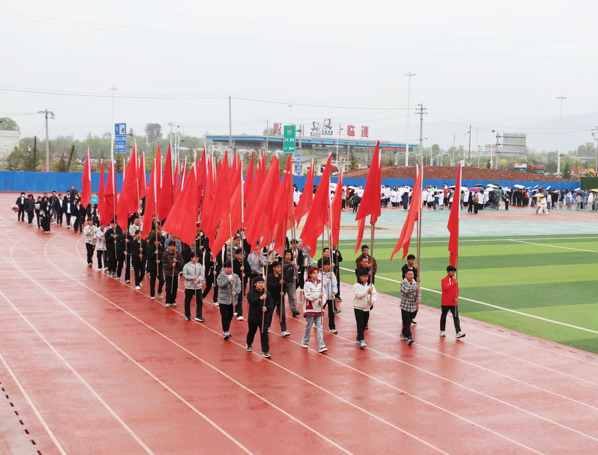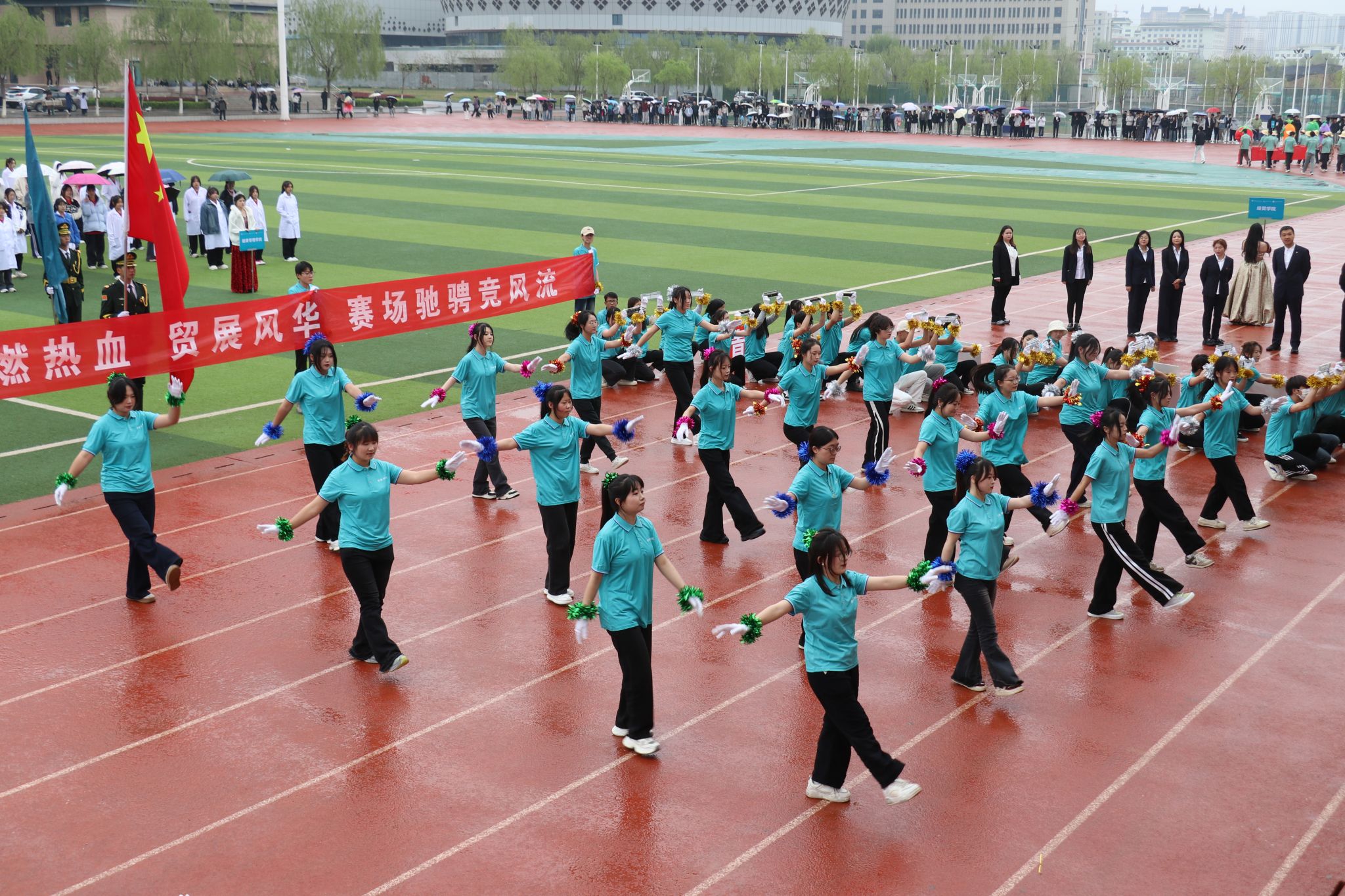 鲜红旗帜迎风展,青春活力踏浪来!他们步伐整齐、精神抖擞,手中彩旗如烈焰燃烧,似彩虹绚烂,象征着beat365官网学子拼搏向上、团结奋进的精神风貌。