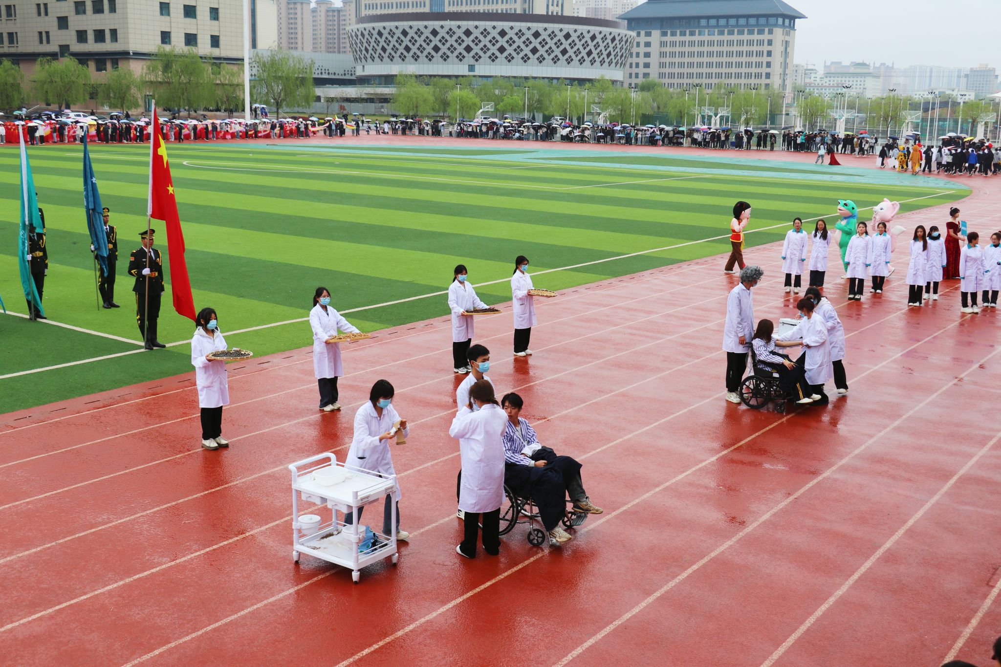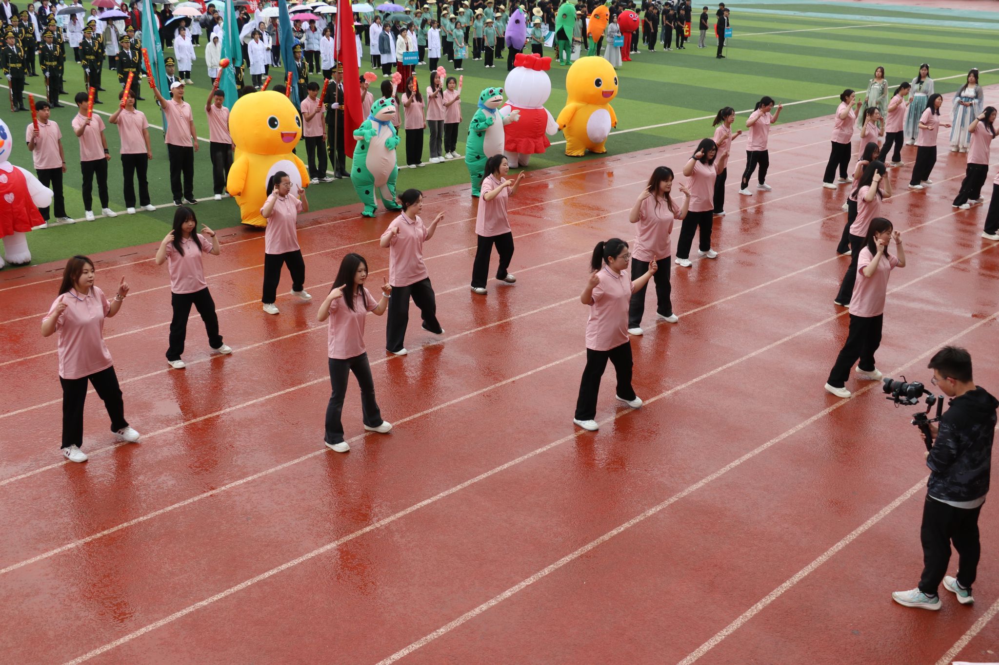 他们以整齐划一的步伐、自信灿烂的笑容,展现了学院“全员健康、全员参与”的理念。