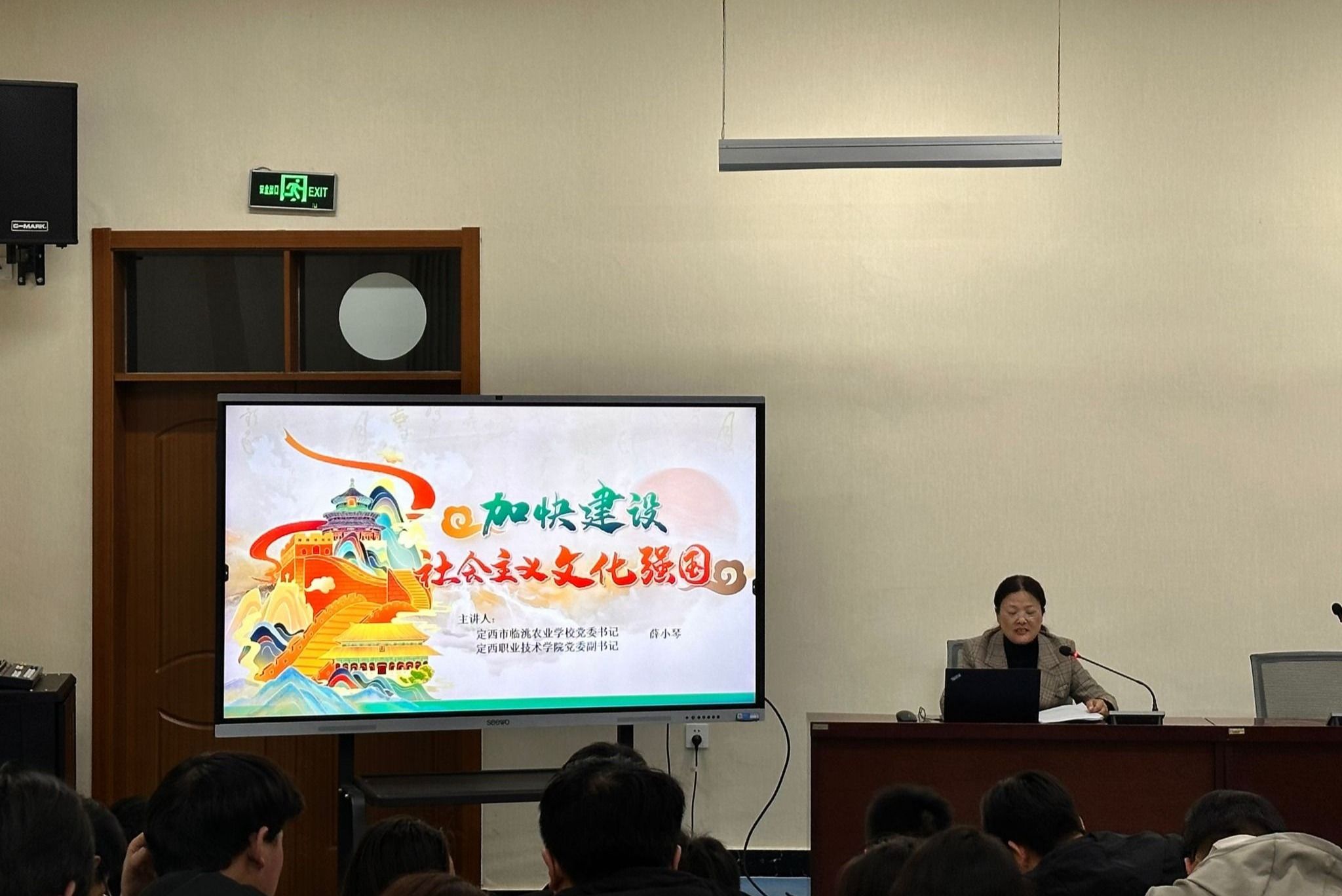 课堂上,薛小琴结合身边的鲜活案例和详实的数据,从“强塑国魂担当历史使命”“非凡成就彰显实践伟力”“坚定自信开启时代华章”三个方面系统阐述了新时代文化建设的重大意义与实践路径。