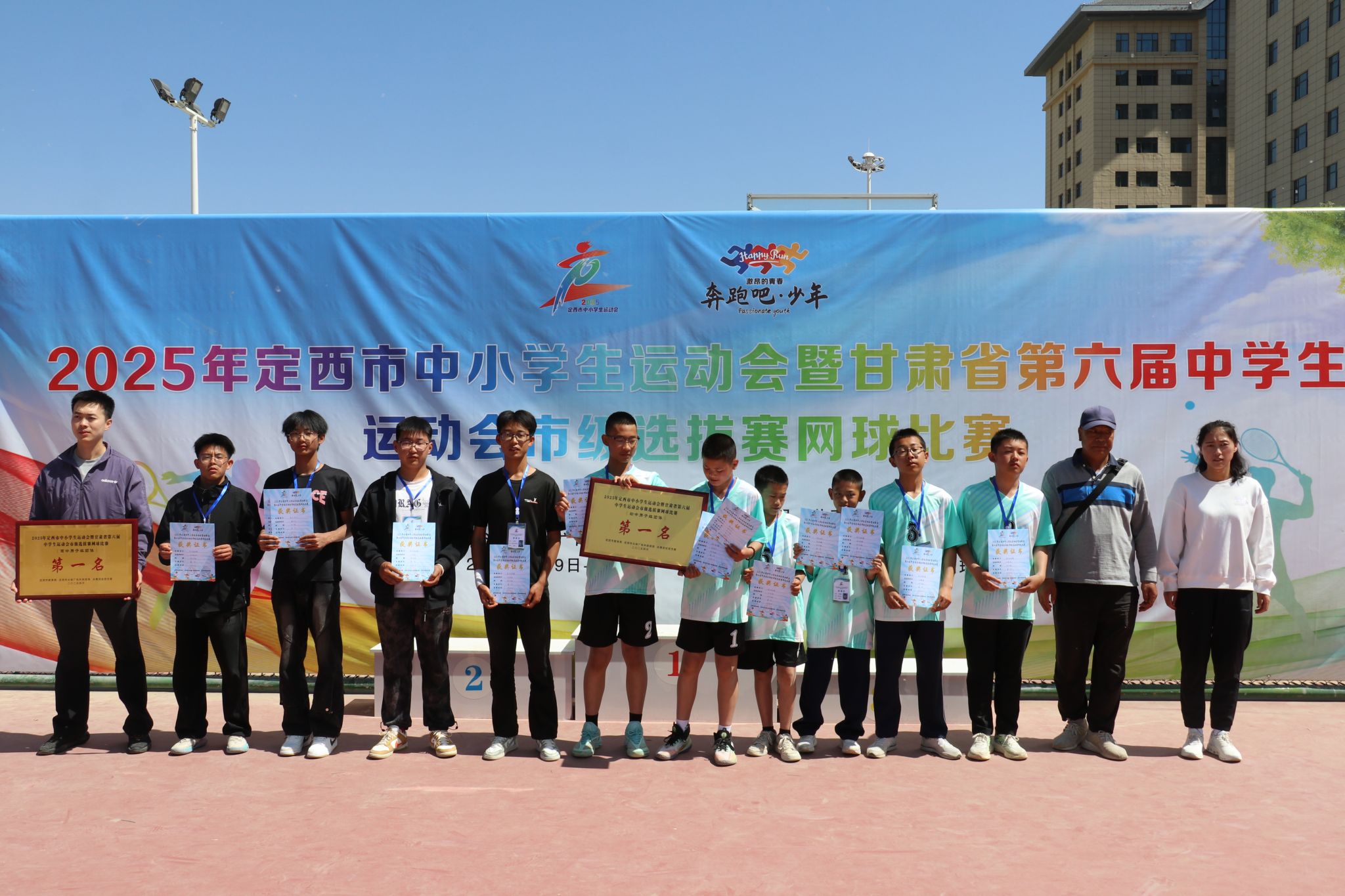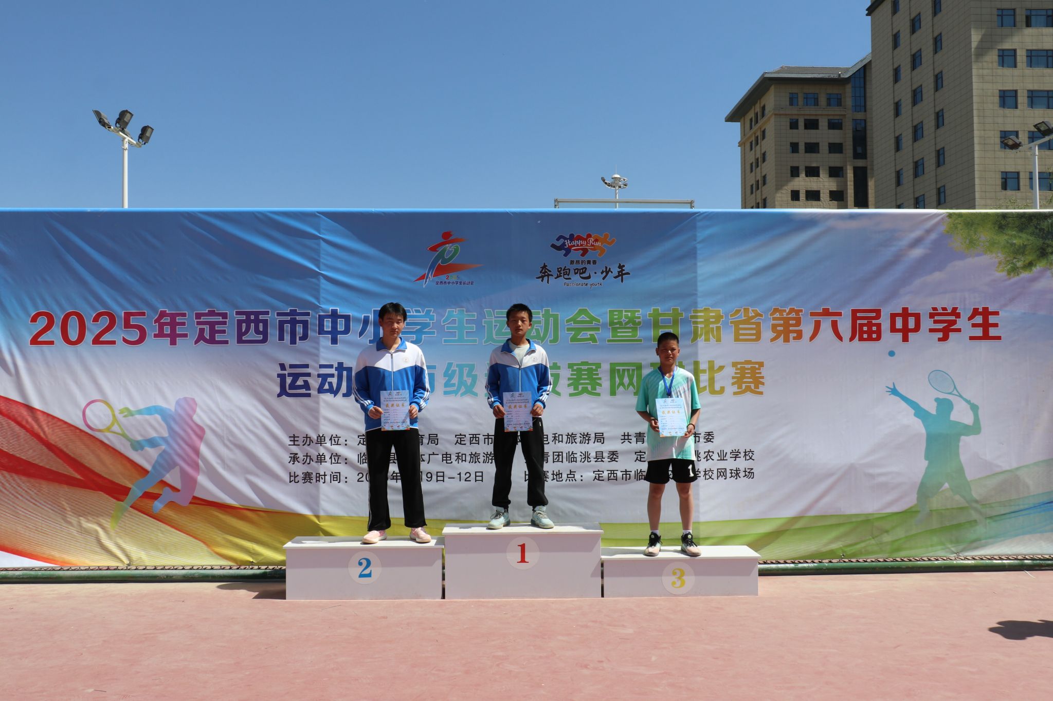 经过两天27盘297局的激烈的角逐,定西市临洮农业学校获得高中男子组团体第一名,临洮县椒山初级中学获得初中男子团体第一名,11日下午在定西市临洮农业学校网球场举行了颁奖仪式。
