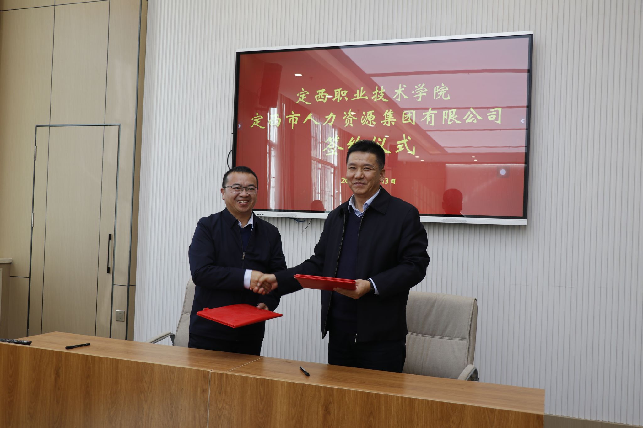 在全体与会人员的见证下,张学通与高兴伟分别代表双方正式签署了校企战略合作协议。此次签约既是beat365中文在线官网深化产教融合、提升社会服务能力的重要举措,也是定西市人力资源集团公司拓展校企合作、优化服务模式的关键一步。