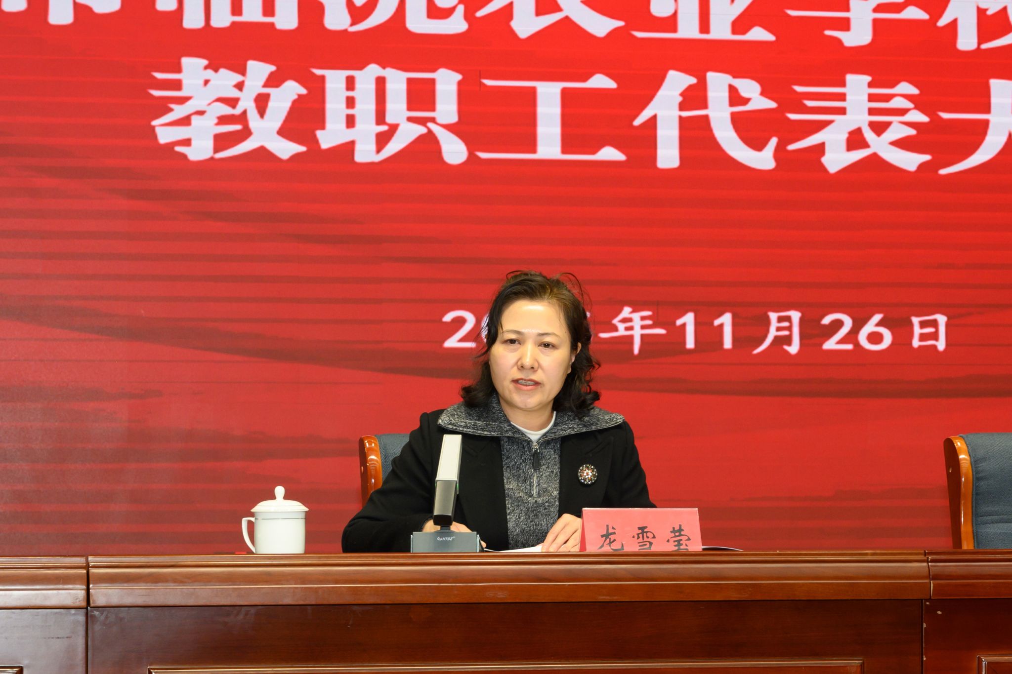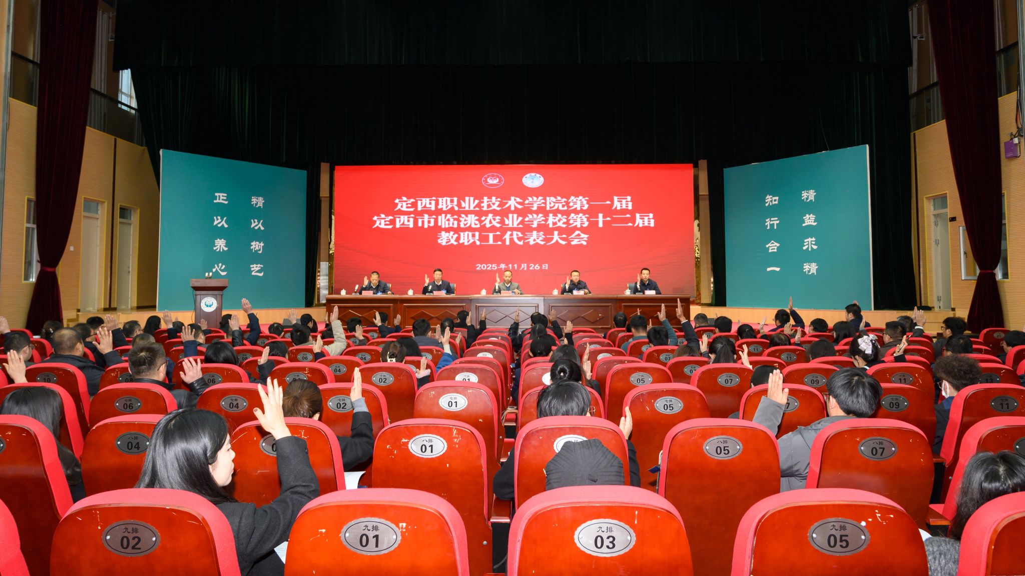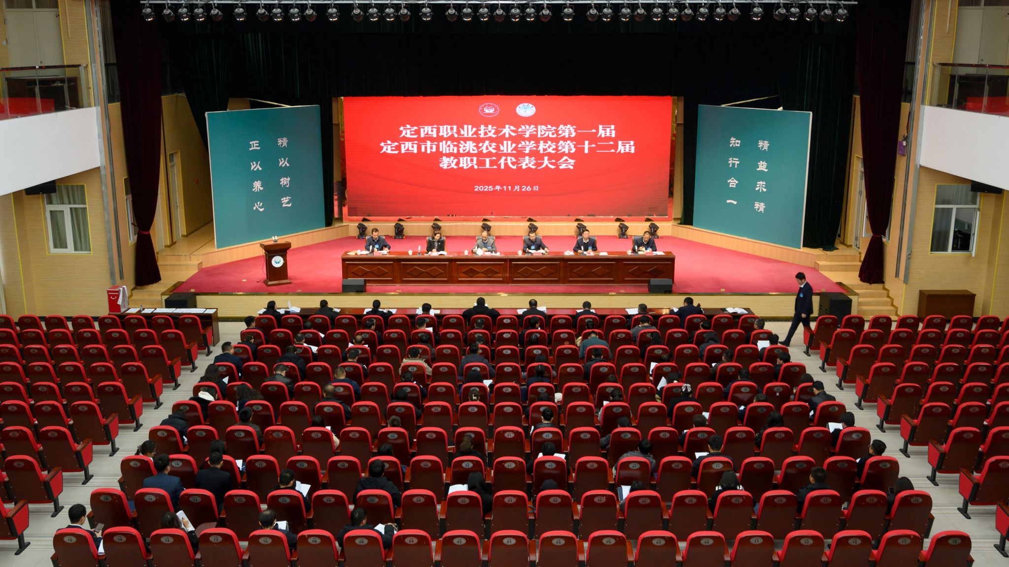 11月26日,beat365中文在线官网第一届、定西市临洮农业学校第十二届教职工代表大会在学校会议中心礼堂隆重举行。市总工会副主席龙雪莹出席会议并讲话,学校全体代表、列席人员参会。