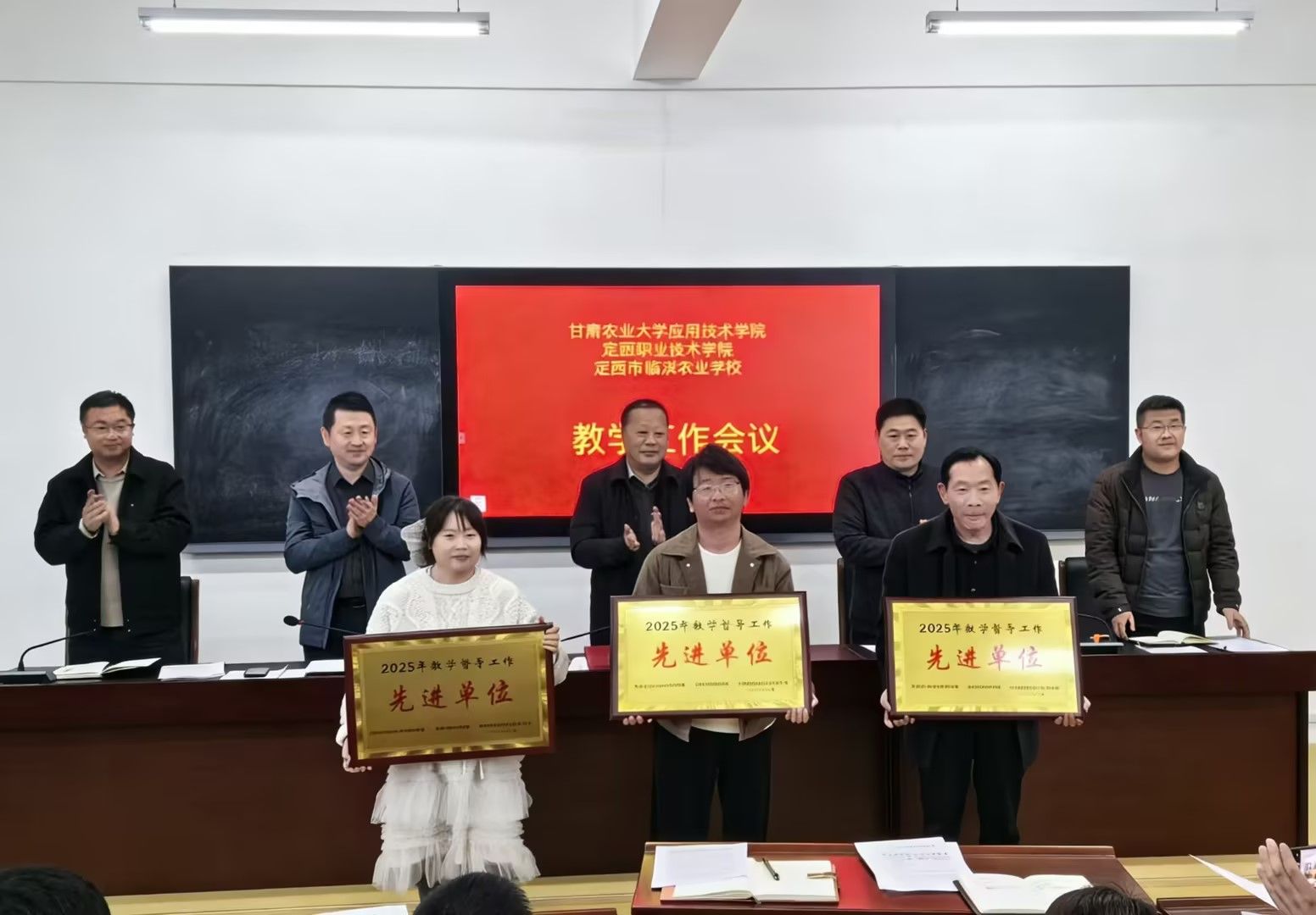教学督导督导办潘涛同志宣读了2025年教学督导先进单位、优秀校级督导员及青年教师教学能力大赛获奖通知,并颁发奖状。号召全体教师以先进为榜样,对标争先,在新学期教学工作中再创佳绩。