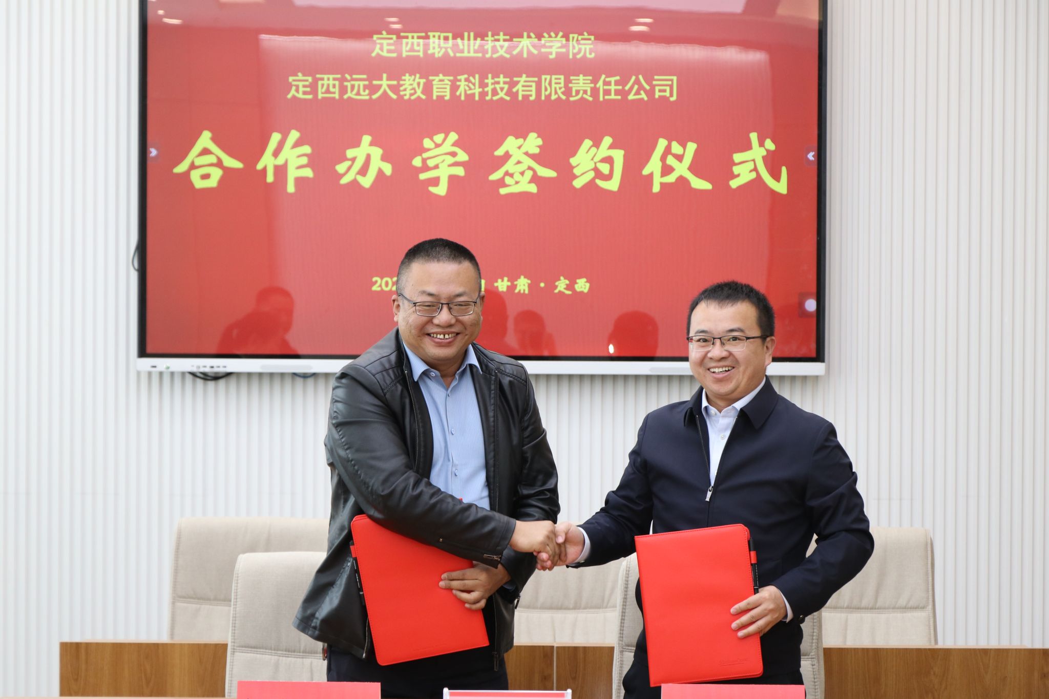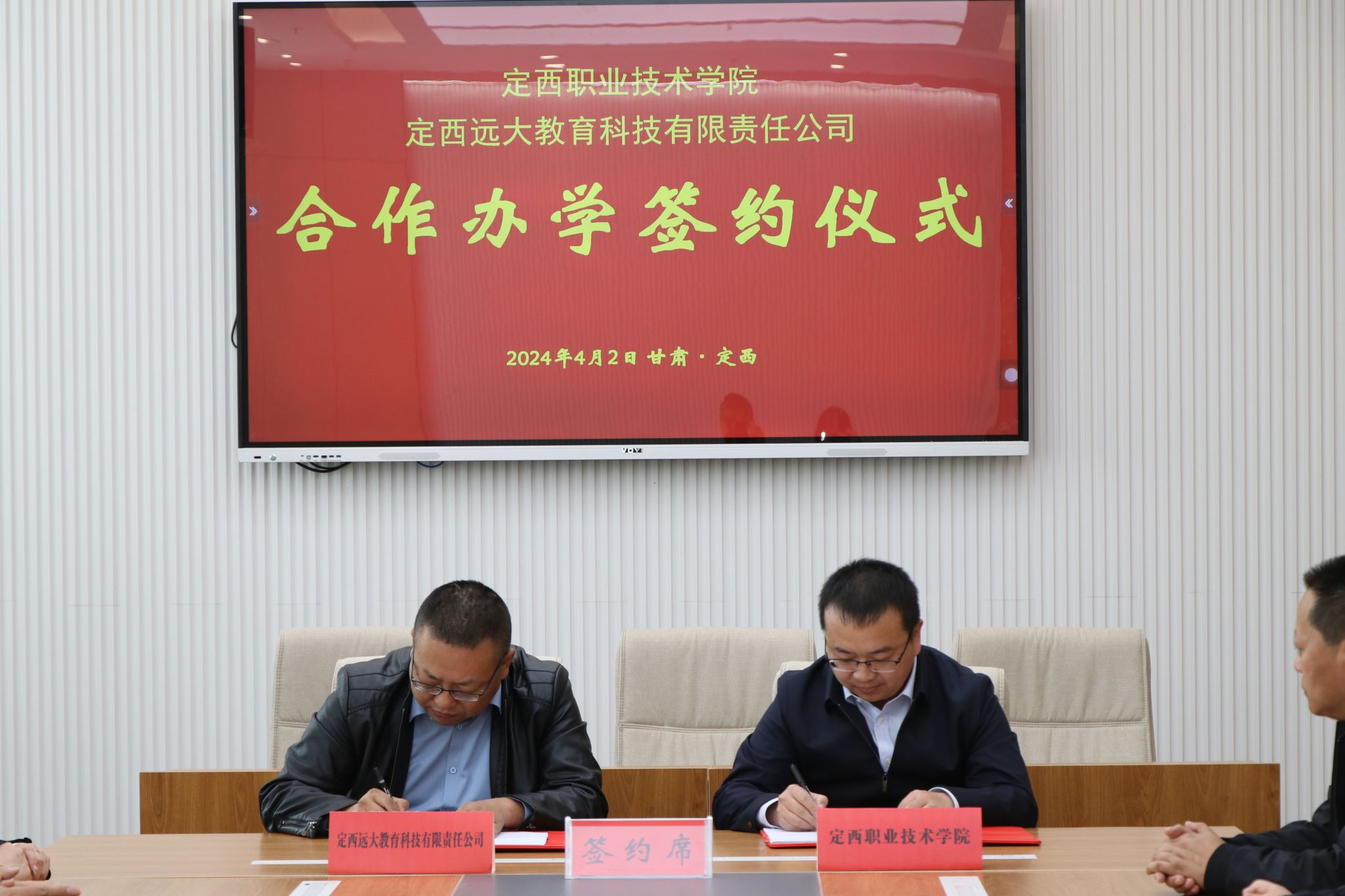 4月2日,beat365官网与定西远大教育科技有限责任公司举行合作办学签约仪式,beat365中文在线官网院长张学通、副院长朱宏伟、培训中心负责人潘涛及定西远大教育科技有限责任公司邓轲一行3人参加签约仪式。