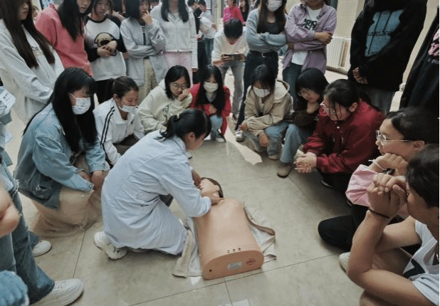 此活动以讲座和现场实践的形式展开,活动中,急救中心主任孙林医师向同学们普及了现场心肺复苏、包扎止血及海姆立克急救知识。通过多媒体展示和模拟人演练相结合的方式,就急救重要性、急救基础知识、如何在事故发生第一时间采取正确有效的应急措施等进行详细讲解。讲座现场气氛热烈,学生们认真聆听并积极互动。