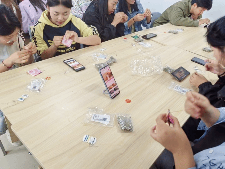 丝丝彩线,环绕手腕,五彩绳是端午吉祥物兼饰物,具有驱邪作用,兼有祈福纳吉的美好愿景。同学们用五颜六色的花线按照不同的编法编成一个个五彩小手绳,寓意戴上所有美好的祝福。