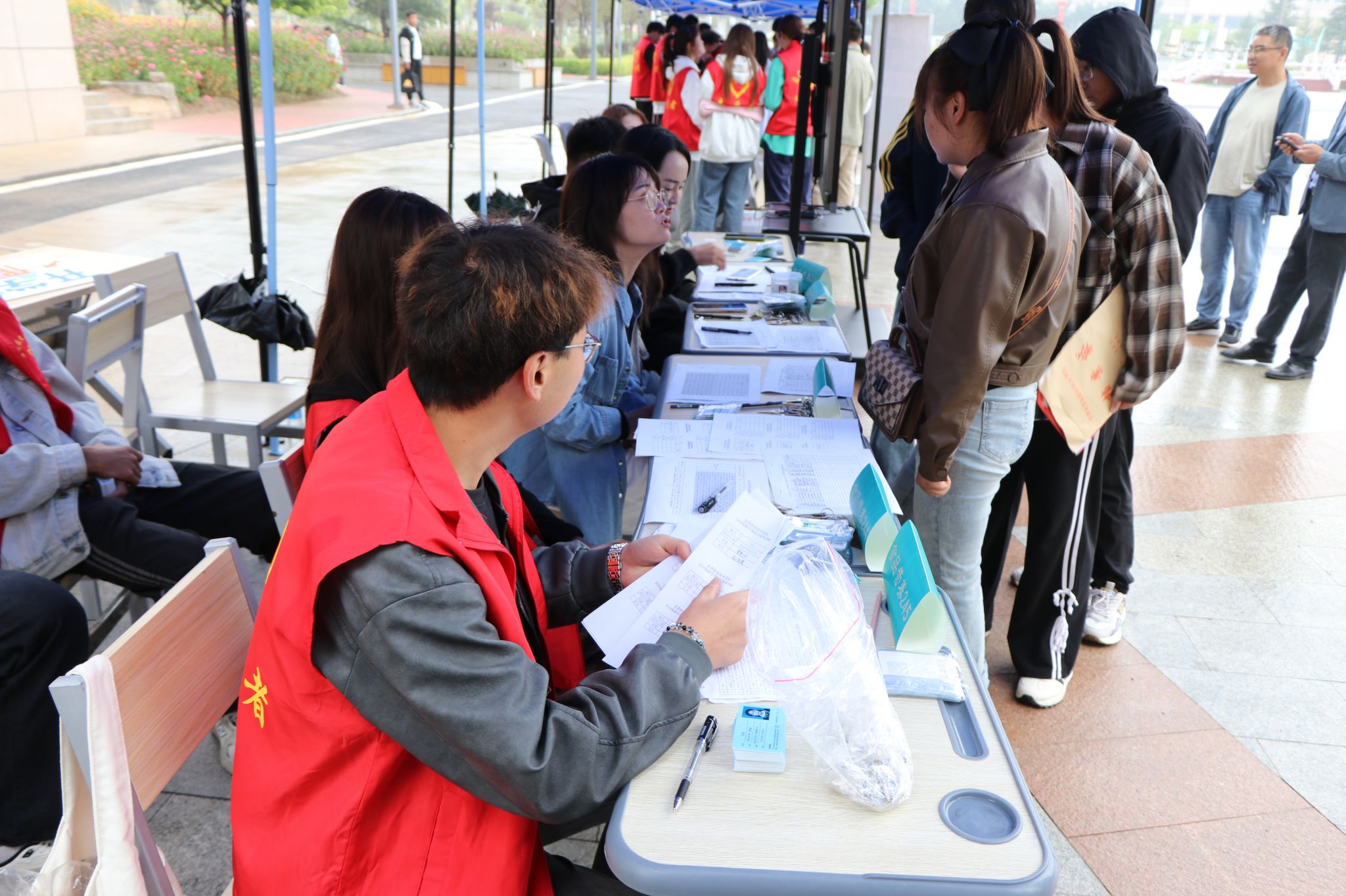 在迎新现场,一支由高年级学生组成的志愿者队伍成为了最亮丽的风景线。他们身穿红色马甲,面带微笑,为新生提供指引、搬运行李、解答疑问等贴心服务。从车站接站到宿舍引导,从办理手续到校园介绍,志愿者们用实际行动诠释了“奉献、友爱、互助、进步”的志愿精神,让初来乍到的新生感受到了来自学长学姐的温暖与帮助,也展现了定职院学子良好的精神风貌。