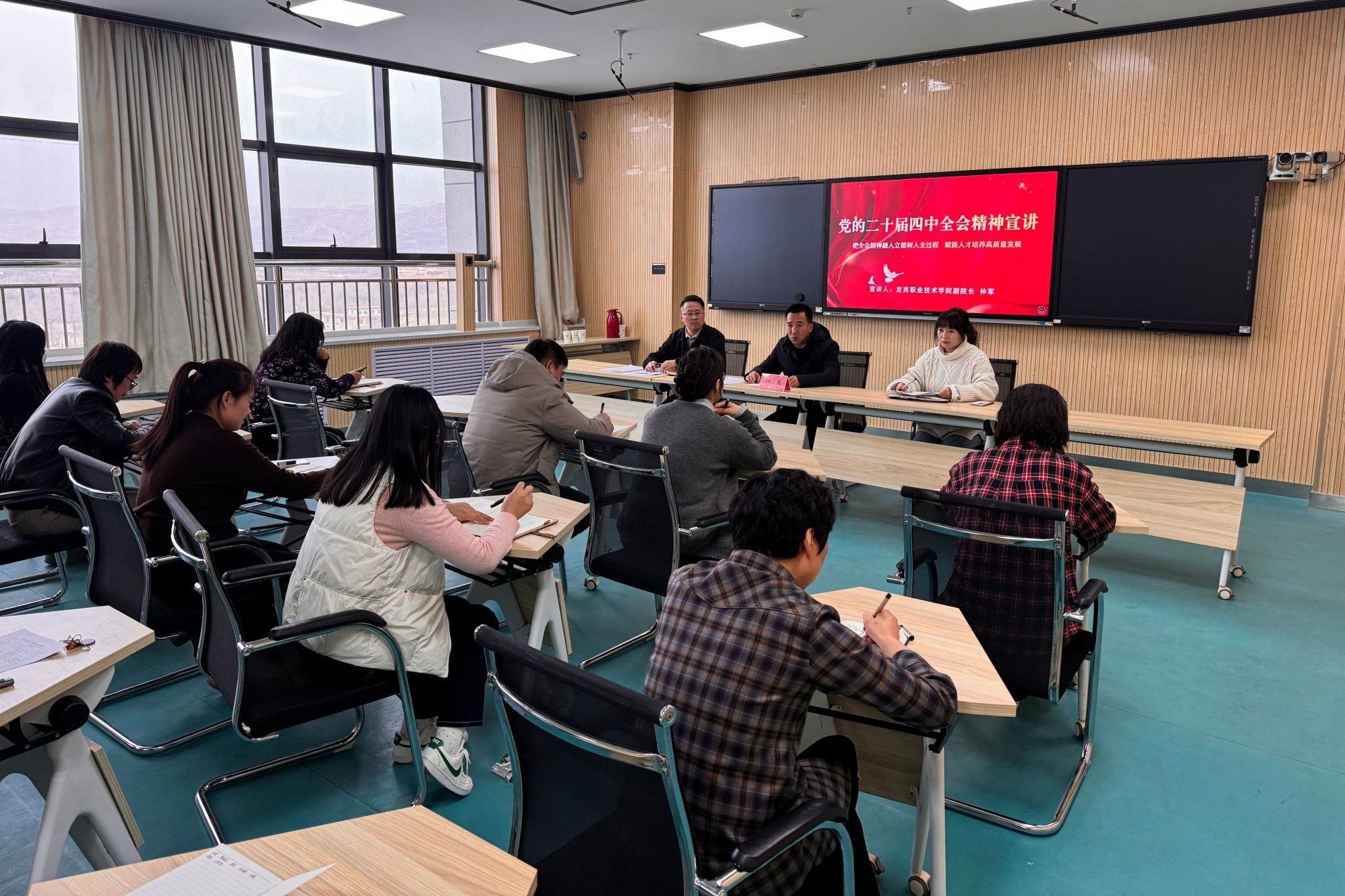 宣讲会上,仲军围绕党的二十届四中全会的重大意义、核心要义与实践要求展开系统解读。他指出,全会是在 “十四五” 收官、“十五五” 谋划的关键节点召开的重要会议,其审议通过的《建议》为教育强国建设和职业教育高质量发展指明了前进方向、提供了根本遵循。结合职业教育 “一头连着人才成长、一头连着产业振兴” 的鲜明特质,仲军重点阐释了全会提出的 “发展新质生产力”“建设现代化产业体系” 等战略部署与经贸类专业发展的内在关联,强调经贸学院作为培养商科技术技能人才的主阵地,必须主动对接区域经济发展需求,找准服务地方产业的切入点和着力点。