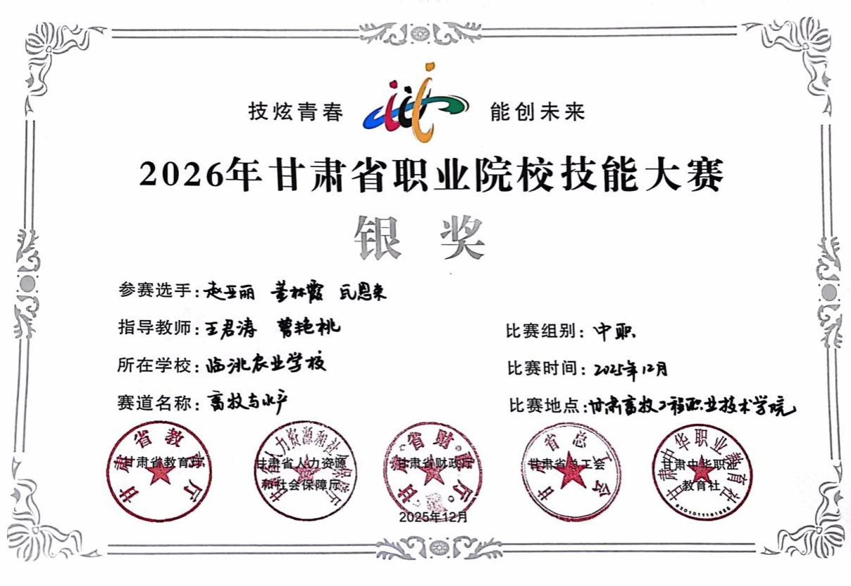 此次获奖,是对beat365官网持续推进“以赛促教、以赛促学、以赛促改”教学理念的生动实践,也是深化“岗课赛证”综合育人的重要成果。学院将以此为契机,进一步强化专业内涵建设,不断提升人才培养质量,为服务区域畜牧业高质量发展提供有力人才支撑。