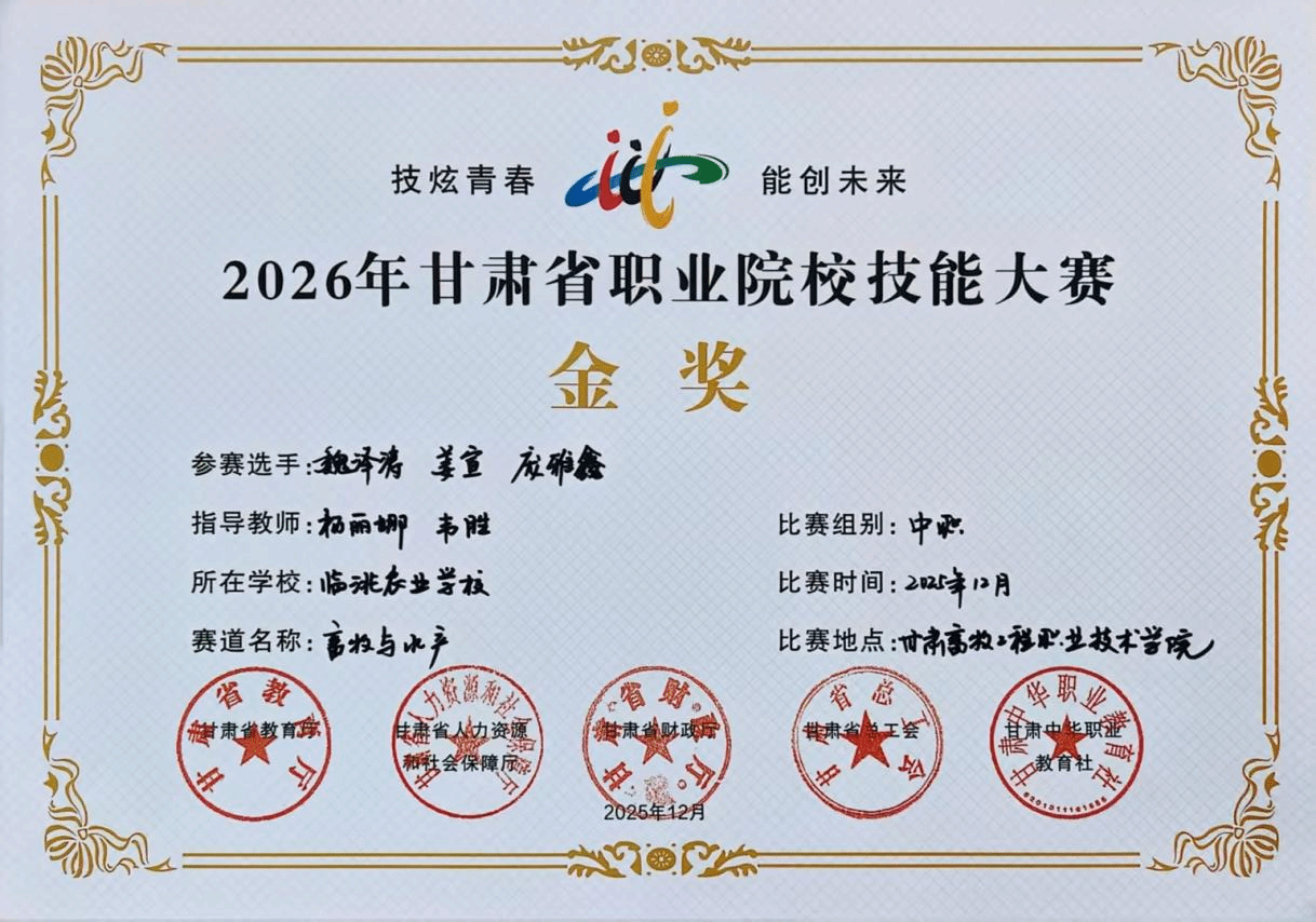 12月19日至12月24日,由甘肃省教育厅、甘肃省人力资源和社会保障厅联合主办的2026年甘肃省职业院校技能大赛畜牧与水产赛项在甘肃畜牧工程职业技术学院成功举办。本次大赛分中职组与高职组两个组别,涵盖畜牧养殖、疫病防治、水产技术等多个项目,共有来自全省20所职业院校的36队选手竞技。