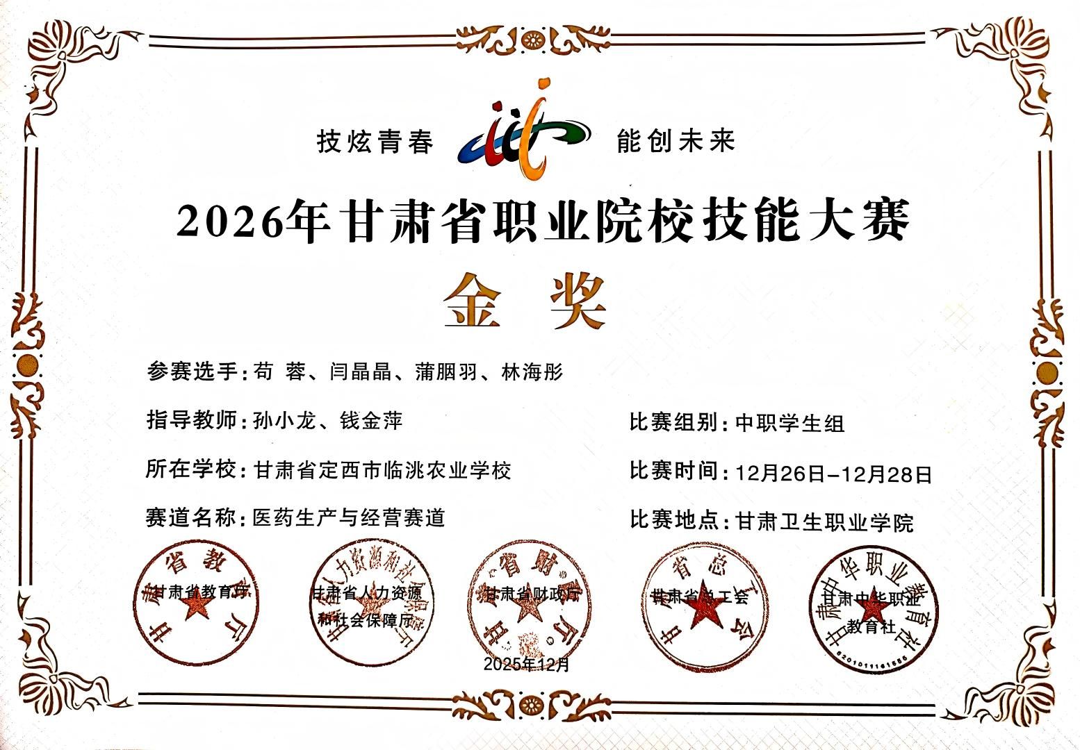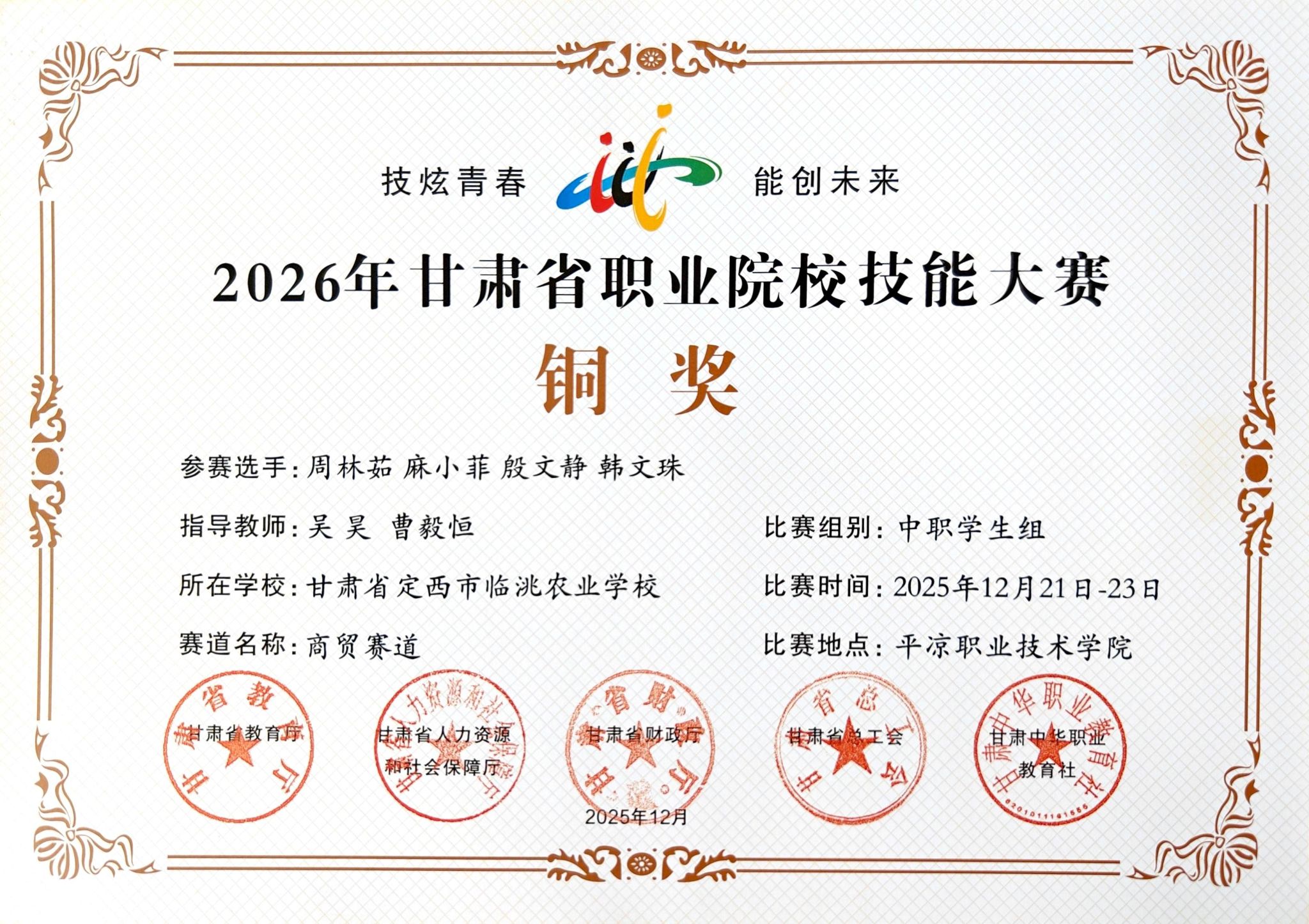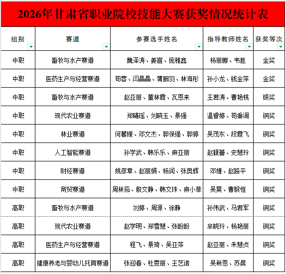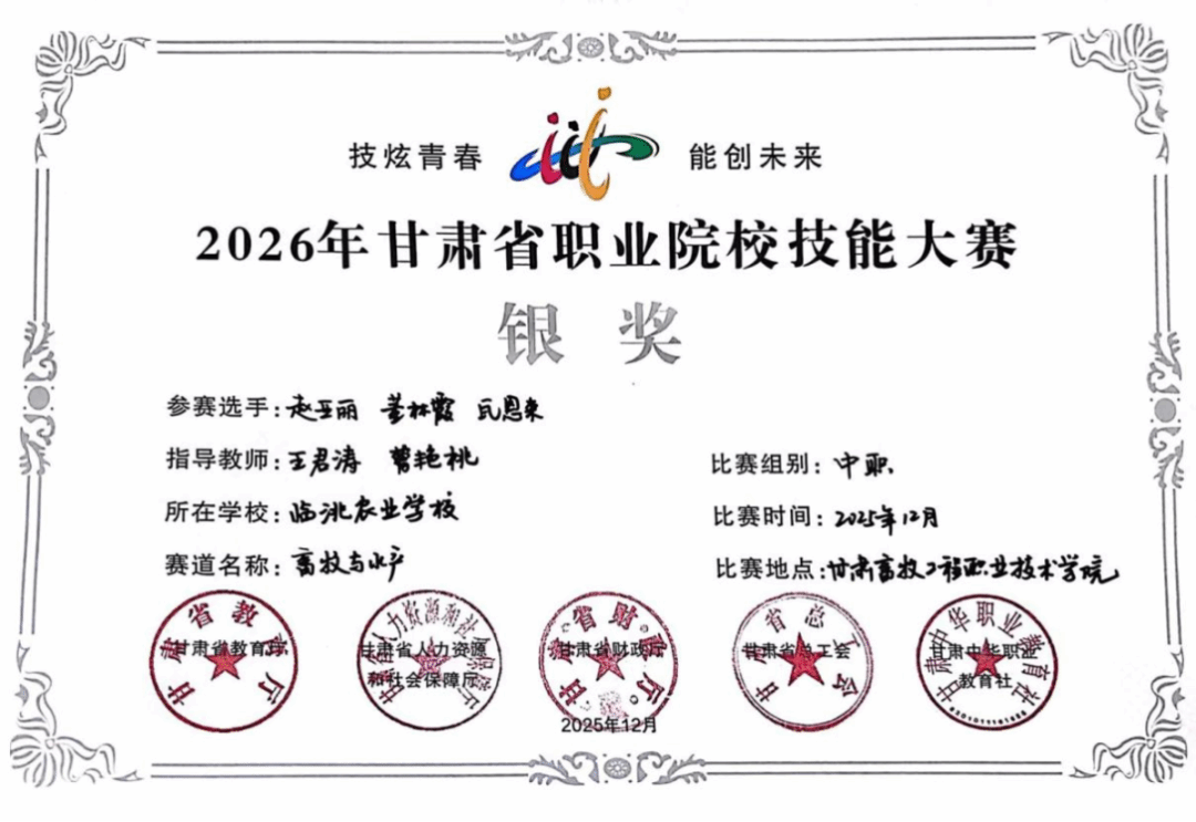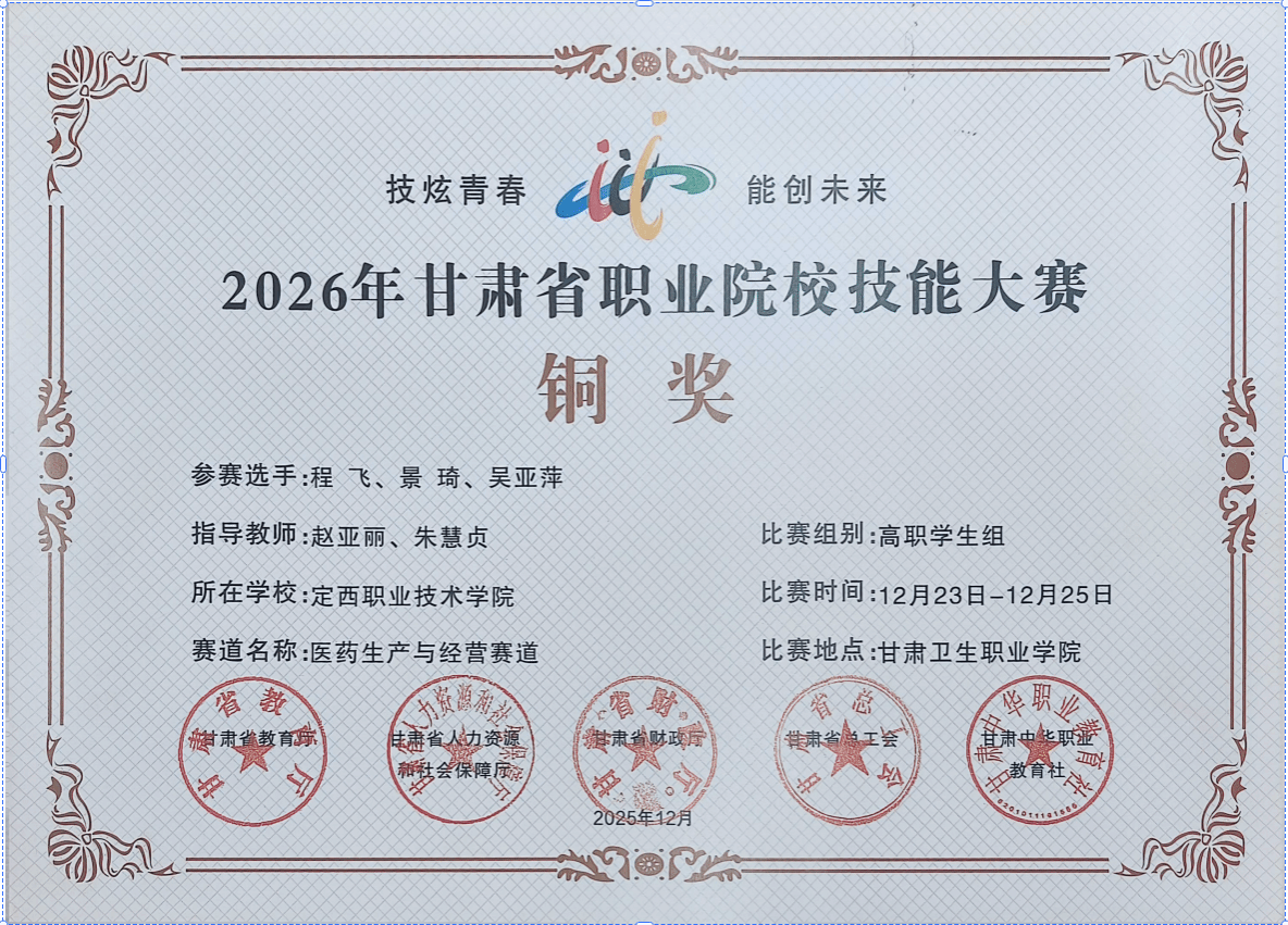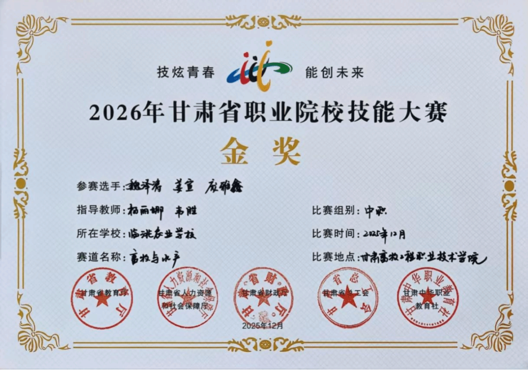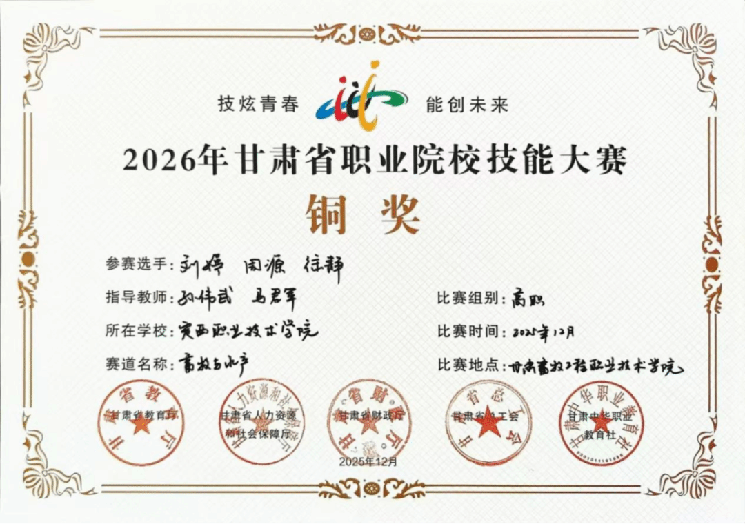 2025年12月30日,甘肃省职业院校技能大赛中高职学生组比赛圆满落幕。beat365官网参赛选手在本次大赛中充分体现了扎实的专业功底与良好的职业素养,共斩获2项金奖、1项银奖、9项铜奖。