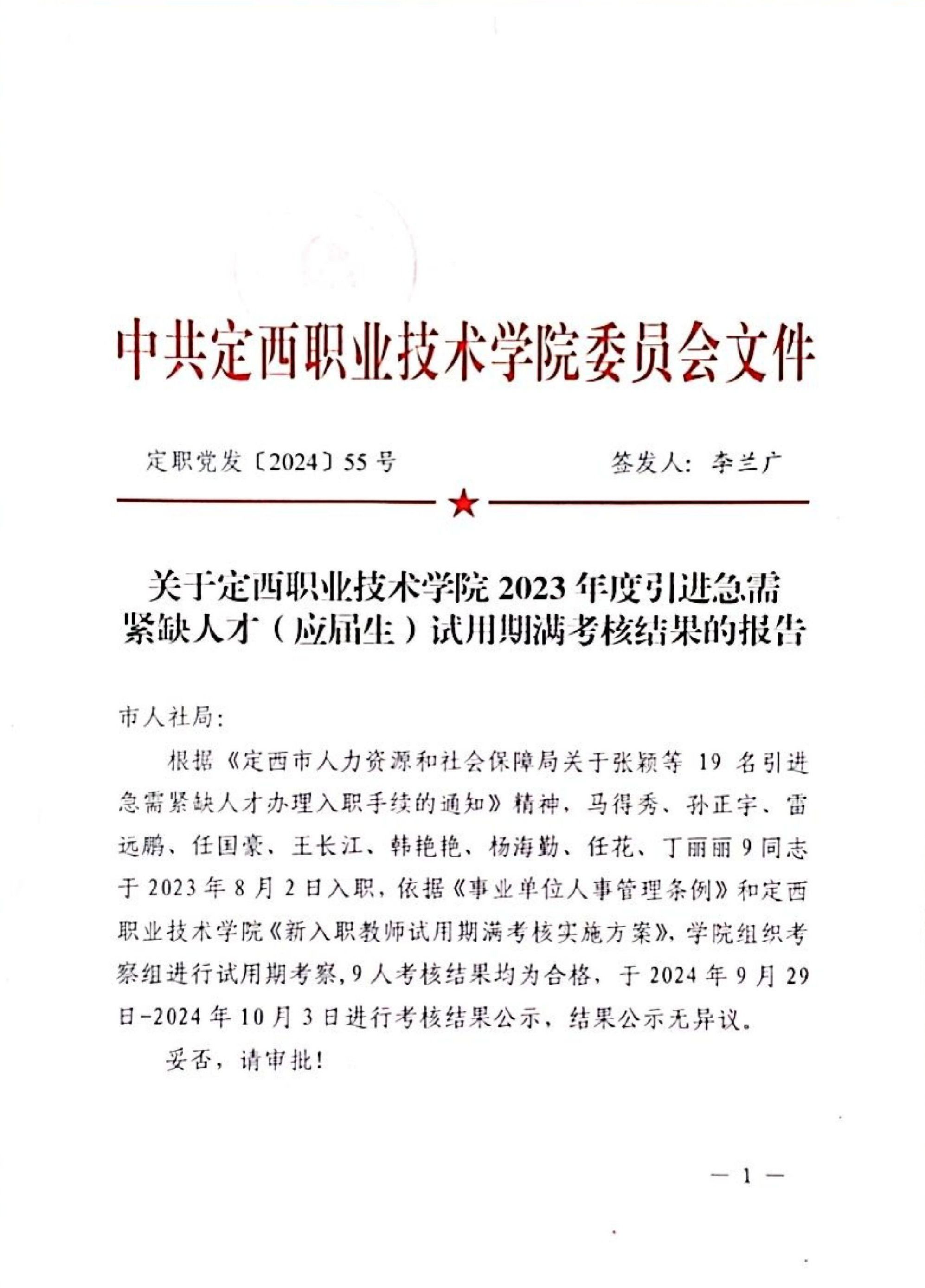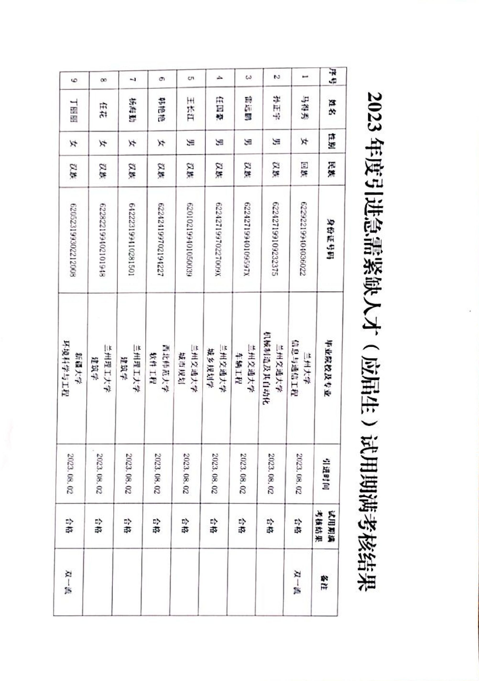 关于beat365中文在线官网2023年度引进急需紧缺人才(应届生)试用期满考核结果的报告