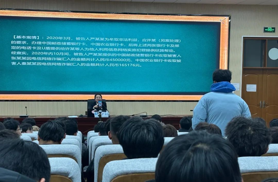 在讲座的最后部分,黄春银针对当前电信诈骗的新动向和新特点,详尽介绍了常见的诈骗手段及防范措施。她教授学生如何识别诈骗电话和短信,以及在遭遇诈骗时如何迅速报警和采取自救措施。同时提醒学生保持警觉,不轻信陌生人的信息和要求,以避免受骗。